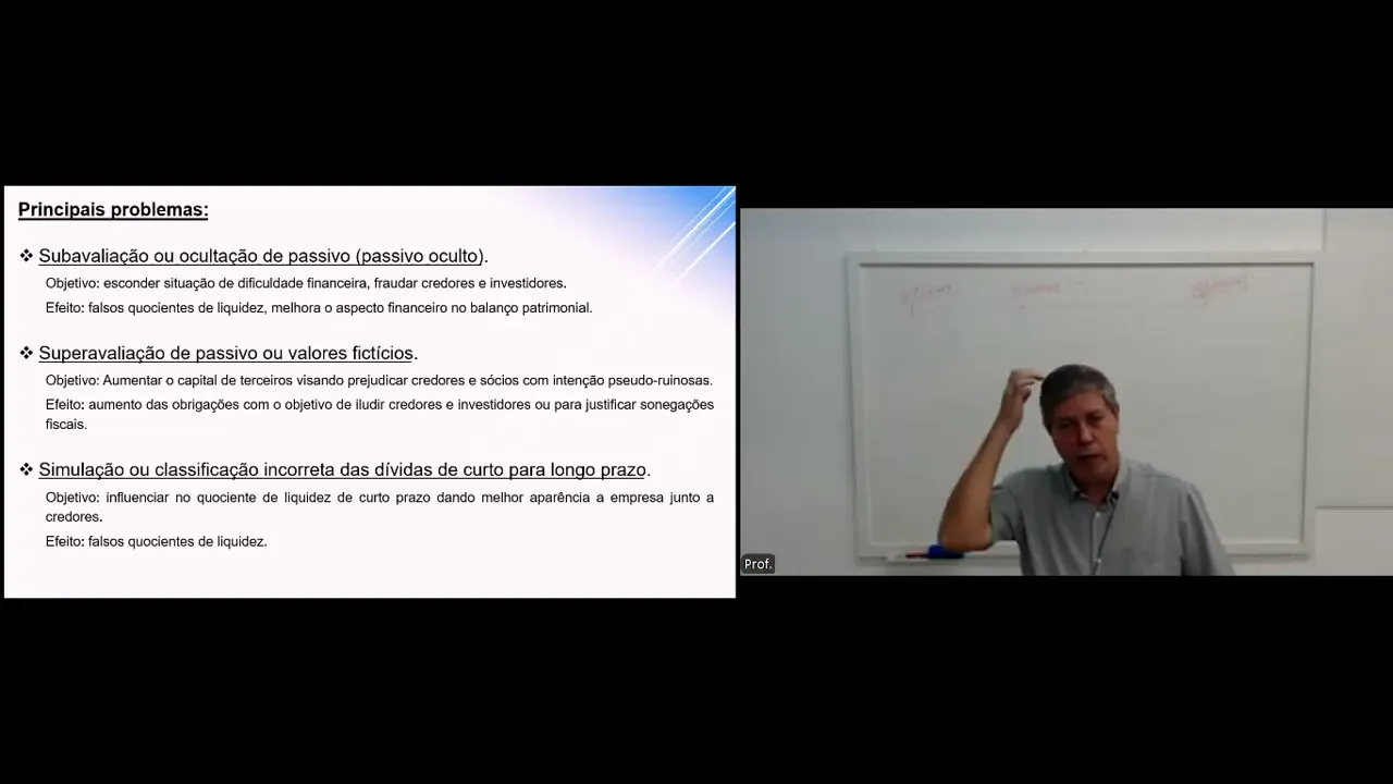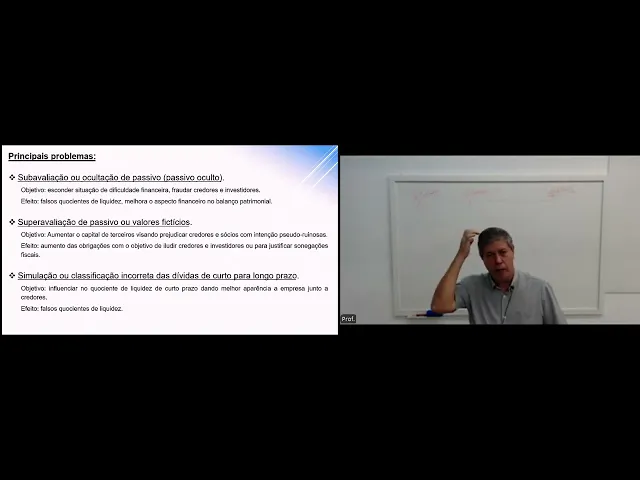 Olá pessoal estamos aqui para mais uma aula de auditoria tá E hoje nós estamos saindo do ativo a última aula nós falamos sobre o ativo intangível E Agora Nós estamos passando pro outro lado do Balanço que é a área do passivo é a área que nos demonstra as origens de recurso e no caso do passivo que nós vamos falar hoje são os recursos junto a terceiros tá ou seja as obrigações exigíveis então Eh dentro do aspecto contábil né o passivo representa as obrigações exigíveis da organização ou seja os o capital de terceiros que encontram-se investidos na empresa tá E eles são classificados pessoal Pelo Grau de exigibilidade ou seja de acordo com o seu vencimento por isso que o passivo ele é subdividido em passivo circulante e não circulante o passivo circulante são todas as obrigações exigíveis cujo vencimento é até o final do Próximo exercício e no não circulante são as obrigações exigíveis com vencimento após o exercício seguindo então que subentende como Próximo exercício Olha nós estamos nós estamos em setembro de 2024 O que é esse exercício este exercício vai até 31/12 de2022 e o que seria então circulante o que seria curto prazo o que fala obrigações exigíveis com vencimento até o final do Próximo exercício ou seja até 31/12 de 2025 Ok então todos os valores que a empresa tem a pagar cujo vencimento é no caso nós estamos falando hoje até 31 de Dezembro de 2025 será classificado como circulante tudo que tem vencimento a partir de 1 de janeiro de 2026 já seria classificado como não circulante eh reconhecimento a obrigação ela é reconhecida quando a entidade recebe o serviço prestado ou quando ela recebe quando a o bem é passado para ela ou seja quando ela recebe a propriedade do bem ok beleza Qual é a composição os fornecedores que são as obrigações Eh vamos dizer assim oriundas das compras a prazo que a empresa tem tem as obrigações fiscais são os impostos a pagar que a empresa tem as obrigações trabalhistas as obrigações que ela tem junto a forne junto a empregados assim como os encargos tá que ela tem sobre a folha de pagamento que ela tem a pagar empréstimos e financiamentos são as obrigações que ela tem junto às instituições financeiras provisões provisão de Imposto de Renda provisão de férias participações e dividendos são os valores a parte de lucros que ela distribuiu que ela ainda não pagou ainda e outras obrigações que seriam ações que não se encaixam em nenhum desses itens acima aí tá Quais são os aspectos da auditoria aqui quais são os os objetivos da auditoria no exame do passivo avaliar os controles internos da empresa de forma assegurar a correta contabilização de todas as obrigações da empresa ou seja reconhecer a obrigação pelo seu valor integral assegurar que todas as obrigações passivas estejam contabilizadas tá eh se vocês lembrarem a uns tempos atrás aí a gente não pode falar empresa mas houve um escândalo aí de uma determinada empresa aí tal que estava ocultando do seu patrimônio aí coisa de 25 bilhões deais tá de obrigações Então esse é o papel do auditor assegurar que isto não ocorra assegurar que as obrigações contabilizadas são realmente dividas pela empresa tá determinar se for utilizados os princípios geralmente aceitos em bases uniformes é o caso de empresso e financiamento que nós vamos ver depois determinar a existência de ativos dados em garantia ou vinculações de passivos é o caso da empresa possuir por exemplo um um financiamento e como garantia desse financio bancário a empresa oferece em garantia ao banco o imóvel da entidade tá então está lá atrelado a obrigação bancária tá o imóvel dado em garantia por o auditor tem que verificar isso aí porque se existir essa situação Essa informação tem que constar em notas explicativas no balanço tá então isso terá que ser descrito em nota explicativo no balanço Então se existe o financiamento e existe o imóvel dado em garantia vai ter que existir lá numa nota explicativa dizendo que o imóvel está eh dado em garantia daquele financiamento Ou aquele empréstimo que existe lá no passivo Então isso é obrigado a ser declarado pela empresa determinar se estão corretamente classificadas nas demonstrações contábeis o caso de uma obrigação de curto prazo ser classificado como longo prazo ou vice-versa e analisar se as divulgações cabíveis for expostas por notas explicativas ou seja sempre existe necessidade de fazer esclarecimento sobre passivo tá então é óbvio que haverá notas explicativas principalmente principalmente se a empresa possuir em e financiamentos Quais são os principais problemas existentes no passivo subavaliação ou ocultação do passivo é o caso do passivo oculto tá é o caso da empresa lá que a gente não pode falar não vem o caso mas é o caso de determinadas empresas que ocultam determinados passivos não declaram esse passivo no balanço e Qual é o objetivo é esconder a a situação de dificuldade financeira e com o objetivo de fraudar credores e investidores não tem nada a ver com tributária tá eu tô ocultando um passivo num não tô querendo eh deixar de pagar imposto porque passivo não afeta o a parte tributária passivo não é uma receita não é uma despesa Não é custo Tá ok beleza então eu tô falando do passivo tá ok pessoal tô falando falando do passivo tá então a ocultação do passivo não tem nada a ver com a parte tributária mas o objetivo é realmente não mostrar que a empresa deve tanto e Naí no caso é para mostrar uma saúde financeira da empresa mais saudável para quem credores e investidores ou seja tá apresentando um balanço com fraude para os credores e investidores o efeito se eu tô reduzindo informações do passivo valores do passivo os meus cocientes de liquidez irão melhorar então o efeito disso aí são falsos cocientes de liquidez falsos conscientes de individ