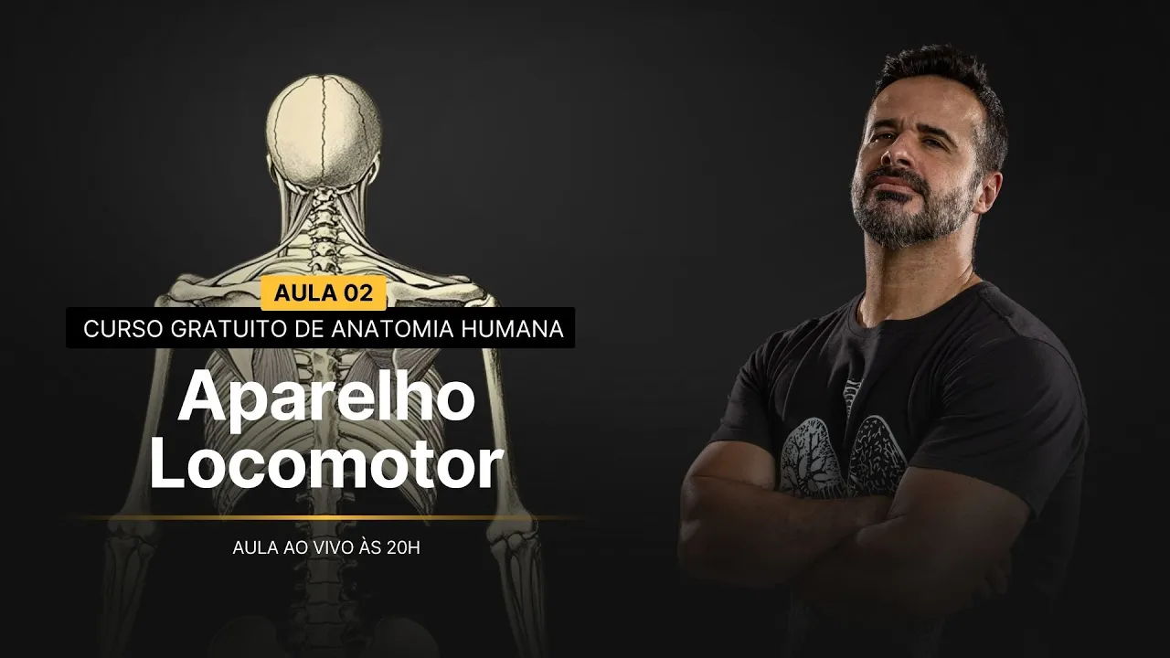เฮ เฮ Ah. เฮ เฮ เฮ เฮ เฮ เ E aí, pessoal? Anatomistas, Como é que vocês estão aí? Vamos ver aqui no chat. Vamos ver como é que tá esse chat que o melhor do Brasil brasileiro. Aí agora sim. Boa noite a todos. Sejam bem-vindos à segunda aula do nosso curso gratuito de 2026. É o nosso quarto curso, primeiro desse ano. E hoje a gente vai fazer um mergulho profundo. Ontem vocês mergulharam na profundidade Da nomenclatura anatômica. Hoje a gente vai mergulhar na profundidade dos sistemas ósseo, articular e muscular de um jeito que você nunca