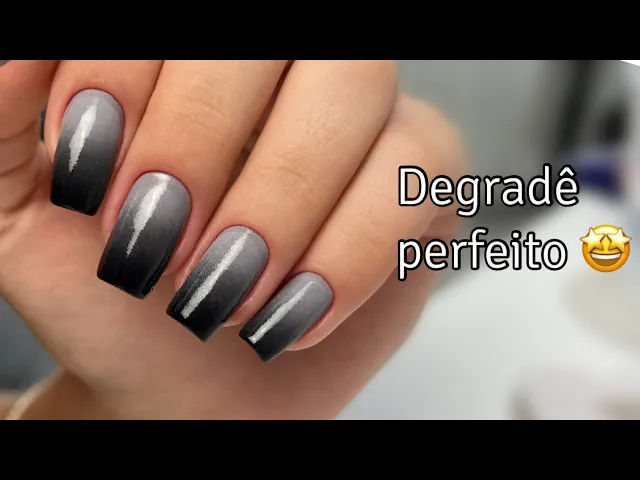 aí para fazer o degradê eu tenho costume de utilizar essas esponjinhas de lavar louça mesmo tá então aqui eu não me dei essa Esponja nem nada do jeito que ela está eu vou aplicar Os Dois Tons Mais Escuros porque primeiro eu vou depositar a cor nessa unha Tá bom então aqui eu vou abrir o recomeços que é o cinza e também o black time então a minha intenção aqui agora é depositar cor tá bom como esse esmalte gente é mais escuro eu tô pensando em remover esse borradinho e fazer o contorno com a fita líquida