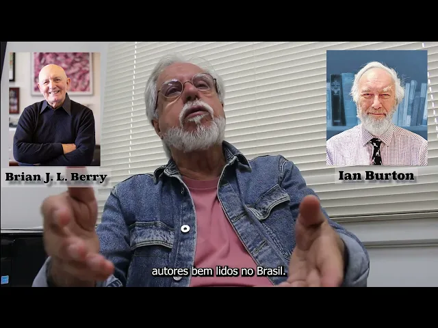 Eh eh a escola de Chicago é aquela que mantém isso como eh muito forte né Depois da tradução de eh texto de fontin em cristal por exemplo que modelizar né o espaço na geografia e né a tendência a a entender a organização do espaço dava certo por meio da linguagem matemática essa linguagem né foi importante eh também porque algumas pessoas saíram né do Rio de Janeiro principalmente do IBGE e foram fazer doutorado em Chicago E trouxeram portanto essa linguagem para cá de autores como Brian Berry Ian Burton né que foram os os primeiros né Eh