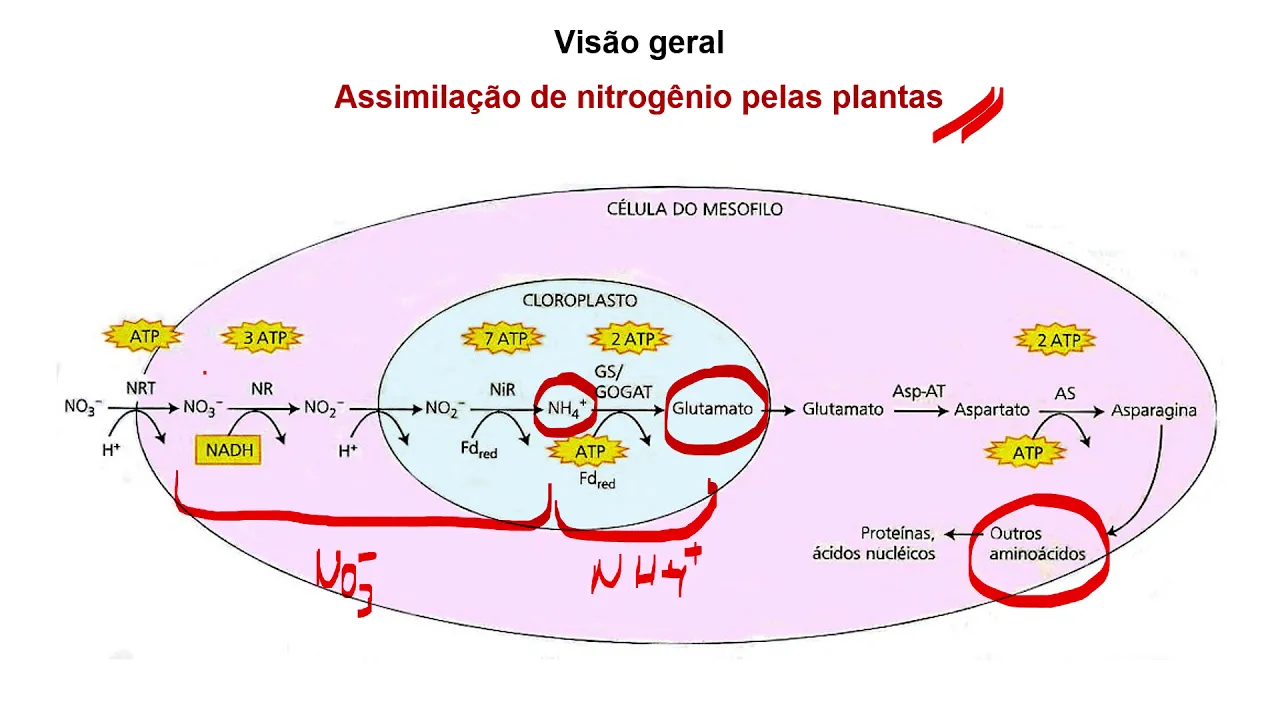 através da gs-gogat em glutamato isso é a fase de assimilação de amônio e agora esse amônio vai subir Marcial de transaminases transformar todos os demais aminoácidos que a planta precisa ou seja se a planta absorve Nitrato esse Nitrato convertido amônio e hormônio através da gs-gogat é convertido em aminoácidos e segue o caminho normal se a planta faz absorção direta de amônio e de um amor gente diretamente na gs-gogat e da GS Gold forma mesmo acho que vai vai formar todos os demais aminoácidos que a planta precisa se a planta absorver ni o no3 - vai