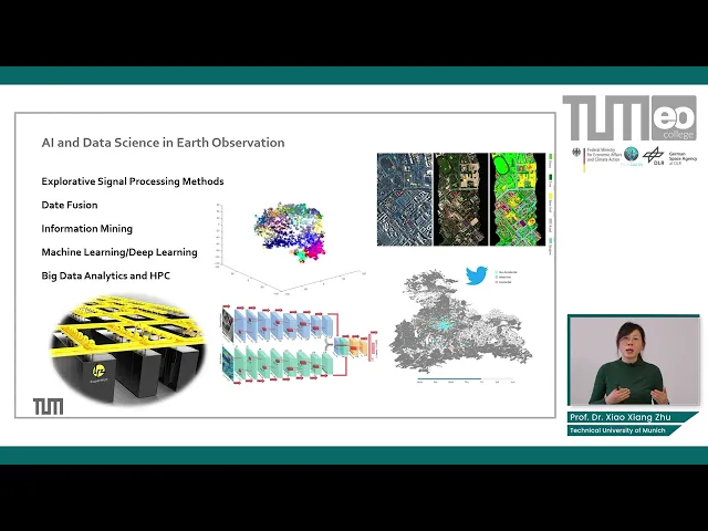 [Music] hello everyone welcome to the Muk course ml for Earth my name is shaanu I am a chair Professor for data science in Earth observation at the tomb today is my great honor to introduce you the introductionary model of the whole course it's called Uh artificial intelligence and data science in Earth observation since the whole course is about Earth observation I will first show you a video to bring everybody to the same page so in Earth observation we are working with the satellites typically the low earth orbit satellite they orbiting the Earth and Ma making