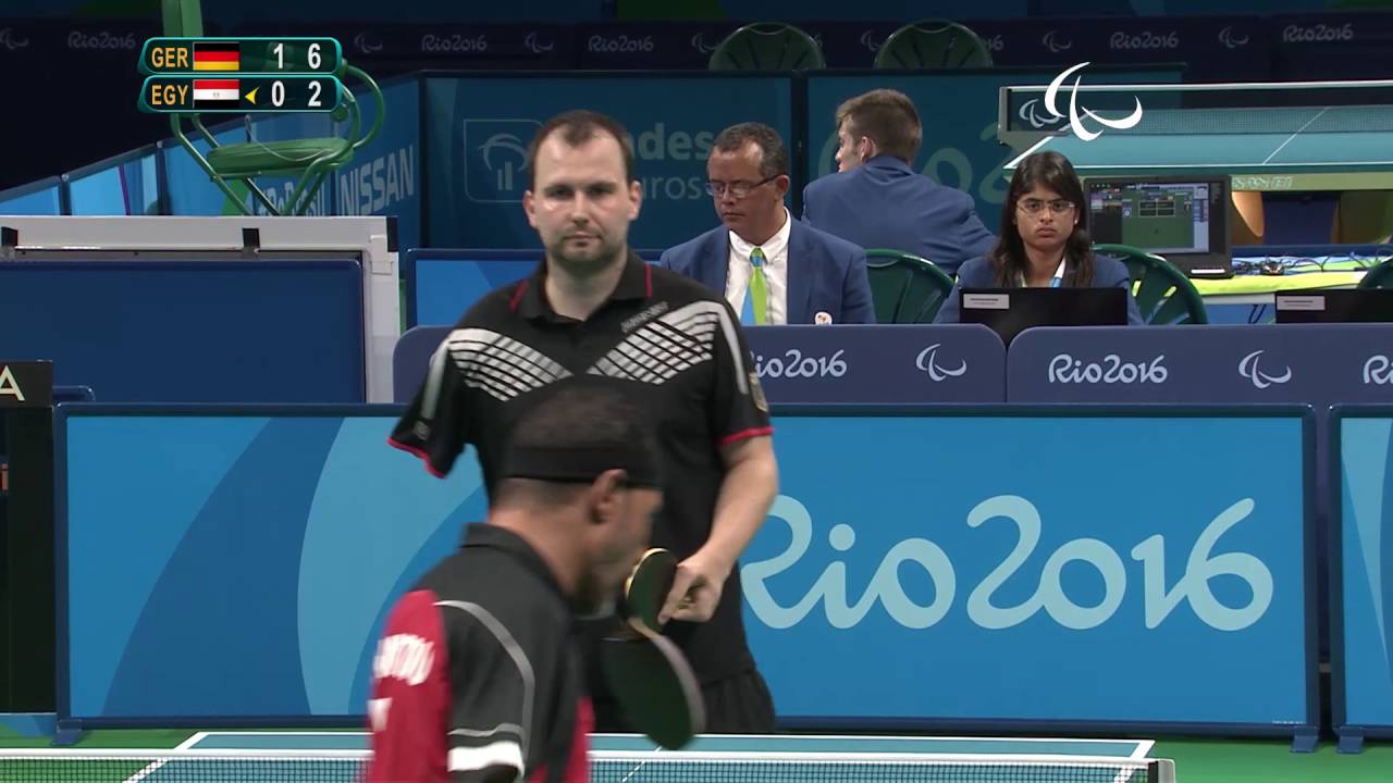 apenas com cinco dentro da quadra de voleibol sentado como diz o próprio nome o esporte é praticado sentado por competidores com mobilidade limitadas podem participar atletas amputados com paralisia cerebral relacionado da coluna vertebral e com outros tipos de deficiência locomotora as equipes são divididas em seis jogadores e o jogo em 5 sets ganha a equipe que venceu em três sets o tênis de mesa tanto no feminino quanto no masculino participam atletas com paralisia cerebral amputados ou cadeirantes com partidas de cinco sets em duplas ou por equipes tiro esportivo as competições de tiro esportivo São divididas