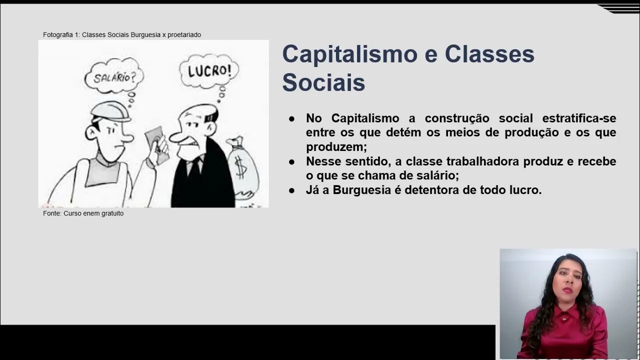 A grande questão aqui no capitalismo, nas relações no início e nas construções econômicas, é que esse lucro vem em sua maioria para o dono da empresa. Assim, no capitalismo, a construção social e a estratificação se estabelecem entre os que detêm os meios de produção e os que produzem. Nesse conceito, nessa correlação ideológica marxista, a classe trabalhadora produz e recebe o que se chama de salário, enquanto a burguesia é detentora de todo o lucro.