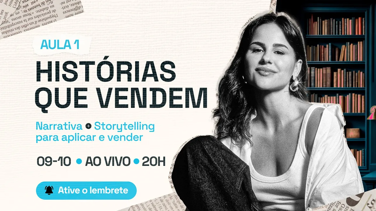 x nessa transmissão porque eu vou est falando lá do começo mas é só porque na hora que for gravar se essa aula ficar inteira no ao vivo ela vai ficar muito longa Então eu quero que eles tenham coisa para editar então F que nada aconteceu Esse é só um adendo e você vai participar desse ao vivo agora oi seja muito bem bem-vindo ao histórias que vendem estou muito feliz Que você está aqui esta aula caso você ache que é eu vou para um lado vou pro outro fala um negócio interajo com alguém ela foi ao