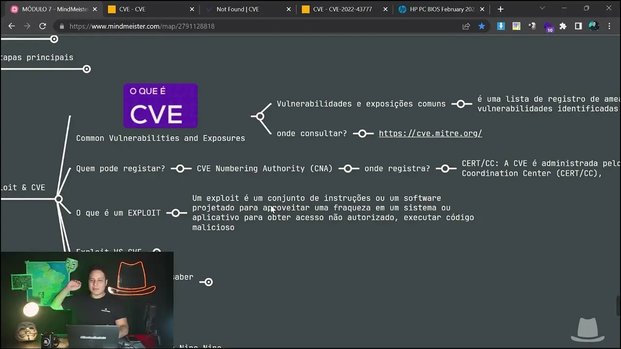 acredito que você já deve ter visto bastante falar sobre a palavra exploit e a sigla cve não é mesmo essa palavra e essa sigla vão estar presente em todo o relatório em toda parte de caçar falhas principalmente em blogs e sites de hacking Mas afinal o que que é um exploit O que que é uma cve Quais que são as diferença entre eles e o por que caso você encontre algum desses pode ser um cheque mais para o seu alvo nessa aula nós vamos falar sobre esses dois termos e vamos aprender mais a respeito disso bora pra minha tela e vamos juntos nessa jornada bom então na minha tela aqui acompanhe comigo o que que é um exploit e o que que é uma cve Então vamos começar aqui com a cve que é uma sigla que vai aparecer demais aí na sua jornada nas suas leituras nos seus estudos se não já apareceu né então uma cve nada mais e nada menos do que vulnerabilidades e Exposições comuns o que significa isso que é uma lista de registro de ameaças e vulnerabilidades identificadas em softwares então imagine comigo que tem um software lá e aí é identificada uma ameaça uma vulnerabilidade nesse software e é claro é catalogado é passa realmente por um padrão para ver se se aquilo é uma falha se de fato vai ser explorada é possível explorar passando por essas esses padrões é criada uma cve tá que é uma exposição de vulnerabilidades comuns mesmo na naquele software ou seja geralmente ela vai seguir um padrão com uma data na frente com uma numeração uma ID tudo bem E dessa forma você a gente consegue ver e mapear se aquele software ele tem muitas falhas se ele não teve falhas até então catalogadas né porque a cve ela nos diz isso a cve ela é um Como diz aqui ó um registro de vulnerabilidades identificadas em softwares então onde que eu posso consultar isso vamos ver de maneira prática aqui para você ver no próprio mitre. org aqui todo dia tá eles vão atualizando D dá uma olhada até aqui ó cve. mitre.
