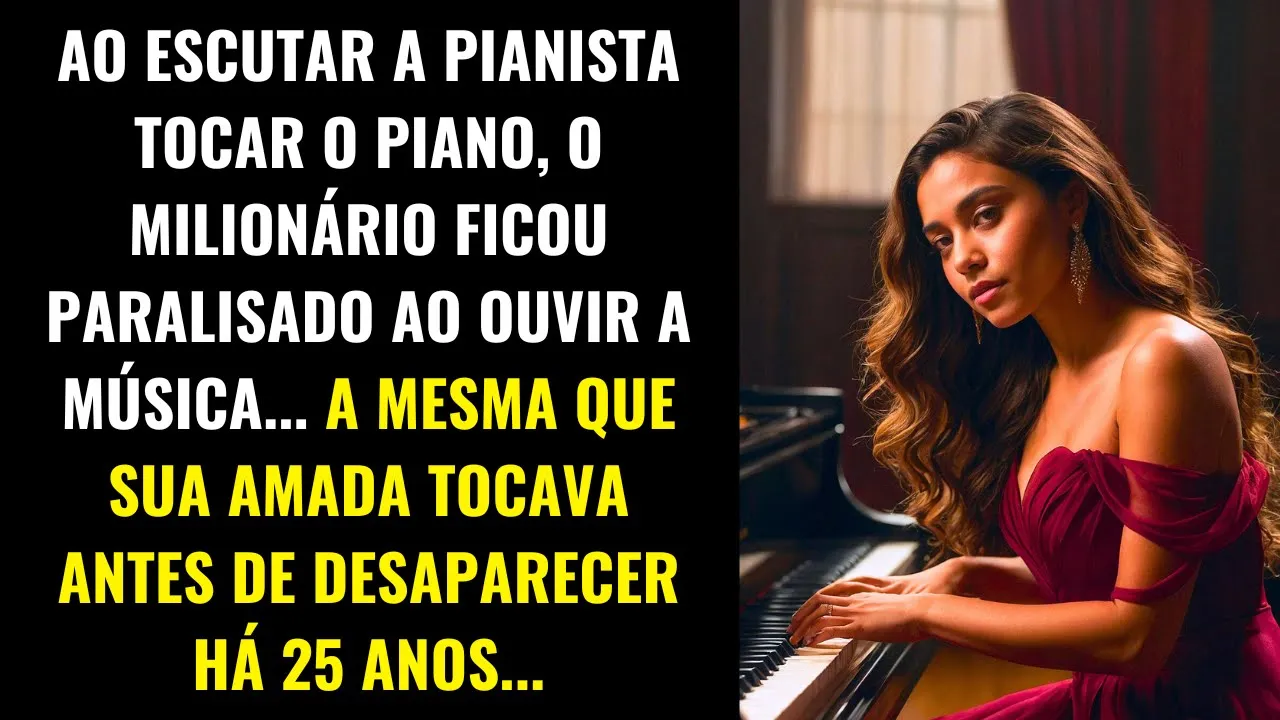 Ao escutar a pianista tocar o piano o milionário ficou paralisado ao ouvir a música a mesma que sua amada tocava antes de desaparecer há 25 anos Bernardo Neves observava a paisagem de Curitiba pela janela de seu escritório no último andar de um prédio luxuoso a cidade estava vibrante como sempre mas para ele tudo parecia distante e vazio há muitos anos Bernardo havia perdido o brilho nos olhos desde o dia em que Helena o grande Amor de sua vida desapareceu sem deixar rastros ele era conhecido por ser um dos empresários mais influentes do país dono de