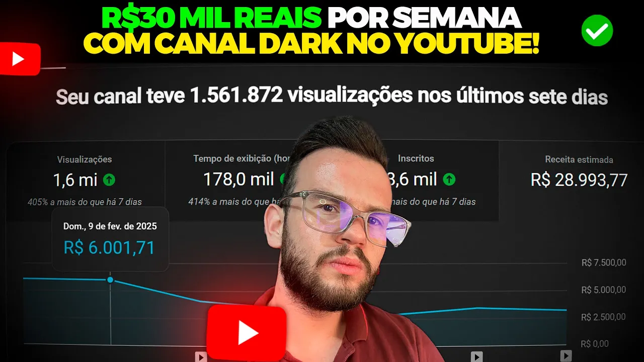 000 então a gente tá falando isso daqui a gente tá falando num canal que fez r$ 9. 000 na semana ó vou atualizar aqui ó 28 dias ó 7 dias então canal fazendo aí R 30. 000 na semana Se continuar assim a gente tá falando num canal que vai fazer mais de R 120.