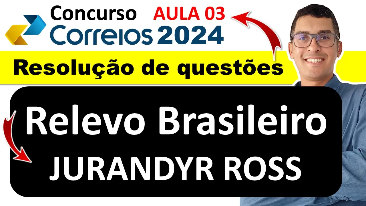 Olá vamos dar continuidade aí às aulas de relevo brasileiro segundo Jurandi RZ para o concurso dos correios 2024 nessa terceira aula eu vou continuar falando sobre o relevo do Brasil vamos resolver mais questões sobre relevo tá E também V vamos falar mais aí sobre o geógrafo Jurandi ry porque as questões de geografia né que a IBFC pode colocar na prova dos Correios deverão ser segundo os estudos desse geógrafo chamado Jurandi Roy e se você não assistiu todas as aulas anteriores a essa a Playlist completa vai estar abaixo na descrição do vídeo ó o Jurandi Luciano
