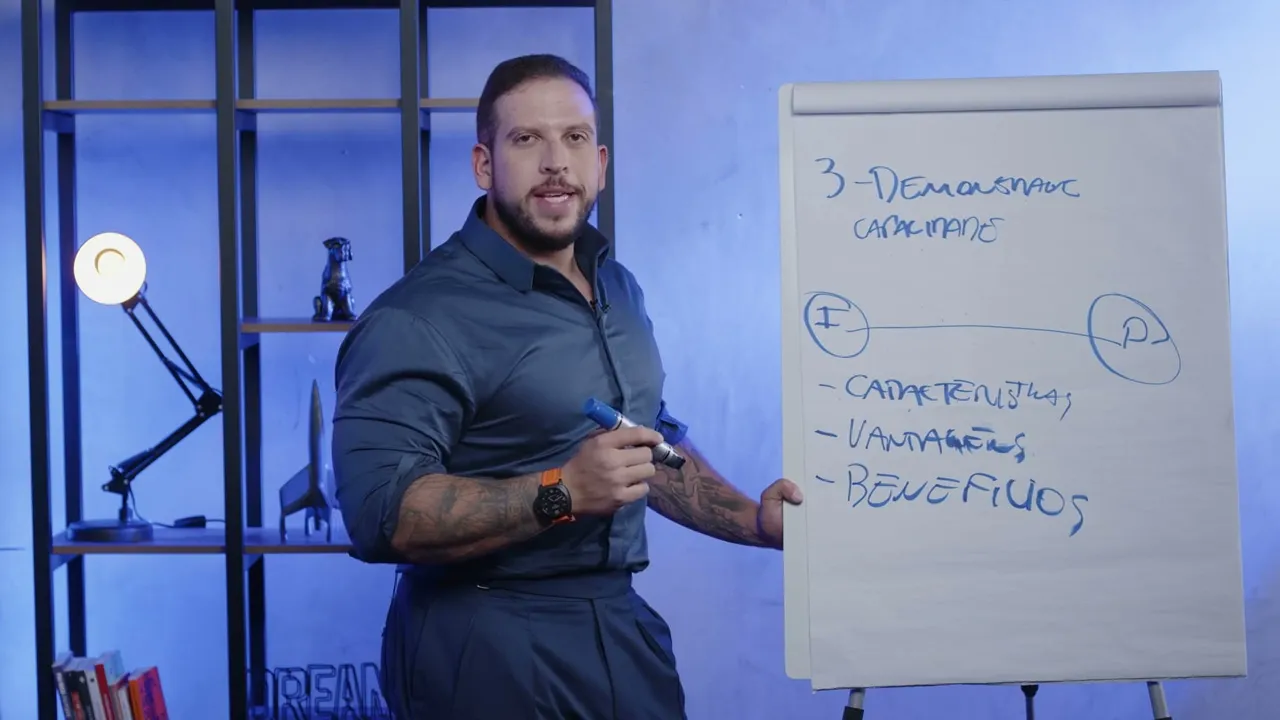que você consiga é emagrecer O que você está buscando emagrecer da esquerda emagrecer tanto a partir de a partir desse modo então sempre aponta para o benefício sempre aponta para o benefício eu posso falar de uma característica mas em seguida eu sempre aponto para o benefício então se eu percebo que característica é importante para o cara vou falar da característica e apontar para o benefício falar da característica e apontar para o benefício Beleza então demonstração da capacidade Qual que é o objetivo aqui eu falo do meu produto é que eu falo da minha empresa aqui