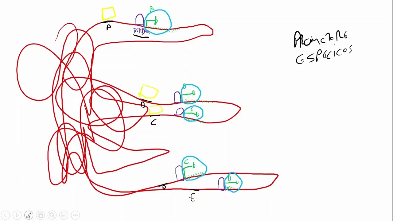 a RNA polimerase agora a RNA Pou vai sentar aqui nesse genes olha tá a RNA polimerase ela foi recrutada para todos esses genes aqui só que a transcrição Não começa ela não vai começar a andar em todos esses genes porque senão todos seriam transcritos e a célula não regularia qual Gene vai estar sendo transcrito em qual momento como que se regulado mas aqui para trás gente eu não consigo ver aonde que tá o meu mouse Isso é um problema mas aqui para trás Olha eu vou ter outras sequências então aqui eu vou ter uma sequência