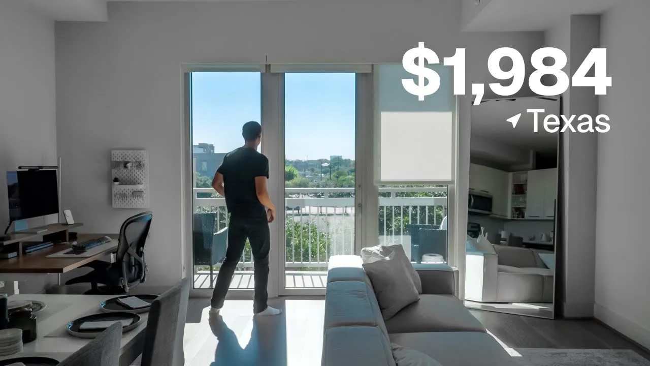 [Music] that was tough to spots [Music] hey come on in so welcome to my 700 s fo studio apartment here in Houston and I'm actually moving away next week but I couldn't leave without showing you since many of you have asked for it so yeah let me show you around again this is our 750 ft studio apartment in Houston Texas more specifically Midtown which I like because it's a lot more walkable as you may have seen in my other videos my office is is just a quick 10-minute bike ride straight into downtown first thing first