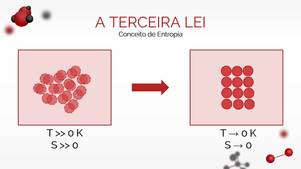 de um cristal perfeito se aproxima de zero quando sua temperatura se aproxima do zero absoluto o Ou seja a terceira lei define o que é o zero absoluto e conecta os conceitos de temperatura entropia para entender o que o teorema de fato significa precisamos portanto entender o que significa um cada um desses termos é bem quanto a temperatura sabemos que ela nada mais é do que uma maneira de se medir a energia térmica disponível de uma substância o que por sua vez é uma medida da energia cinética das moléculas que compõem essa substância e sabemos
