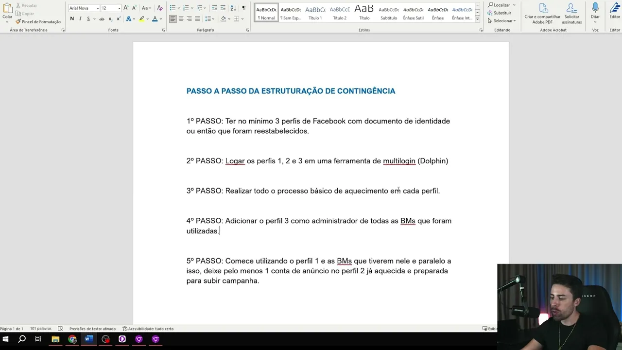 fala pessoal então nessa aula aqui eu vou te ensinar a estruturar sua contingência na prática vocês vão ver que é um negócio extremamente simples é só você se atentar aqui abaixo eu vou deixar um PDF dessa aula com os passos que você deve seguir só para você não se perder certeza que você executou cada etapa da maneira correta e vamos lá então passo a passo da estruturação de contingência Lembrando que é uma contingência não tem número mínimo de perfis quanto mais perfis você tiver maior será a sua contingência e mais porrada ela vai aguentar né