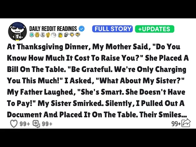 At Thanksgiving Dinner, My Mother Said, "Do You Know How Much It Cost To Raise You?" She Placed...
