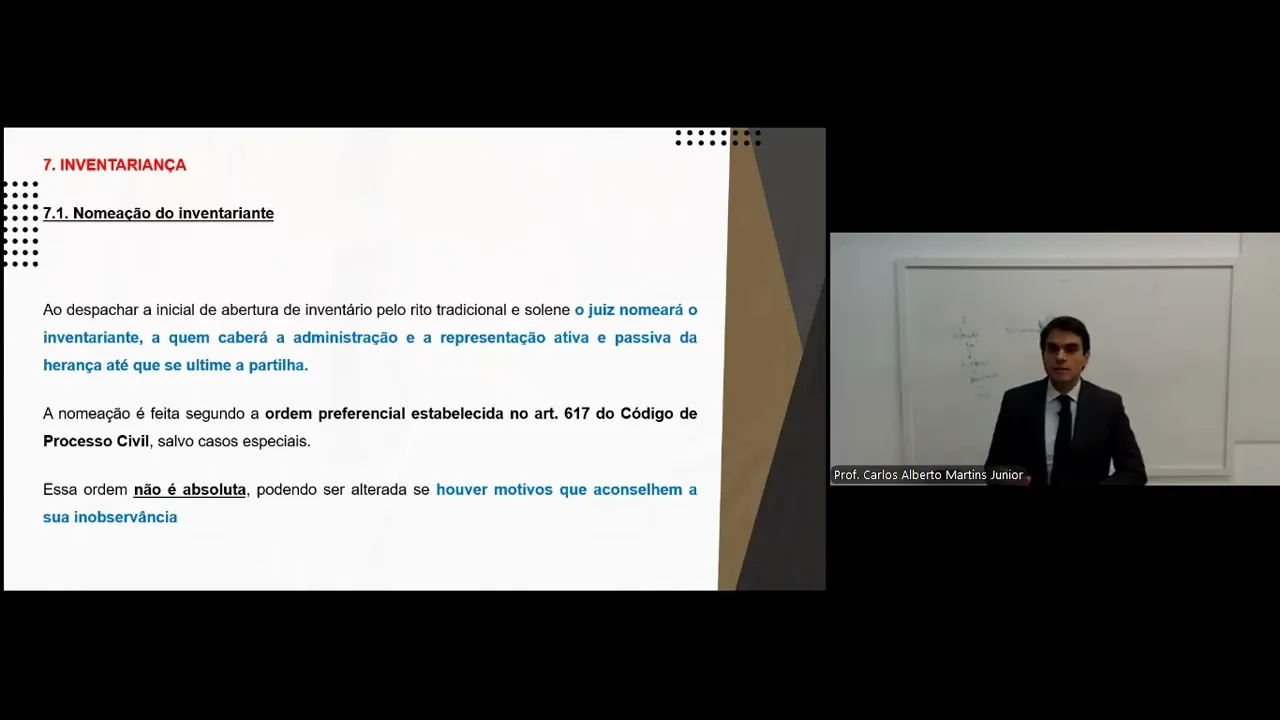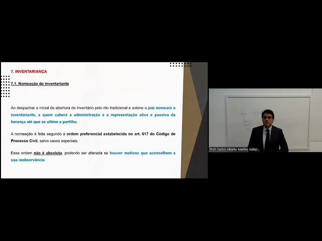 continue sendo Ok H seguindo 616 diz legitimidade concorrente para ser nomeado como inventariante com geoc companheiro herdeiro legatário cessionário credor do Herdeiro Ministério Público fazenda pública administrador judicial nós vamos ver cada um deles Olhem só a obrigação imposta pela lei ao magistrado em caráter excepcional demonstra que há o interesse público em em que as situações do direito hereditário sendo transitórias perdurem o menor espaço de tempo possível por isso é que lá se estabelece aquele prazo aquele prazo Inicial e aquele prazo final até do meses para poder abrir e até 12 meses para poder efetivamente ter