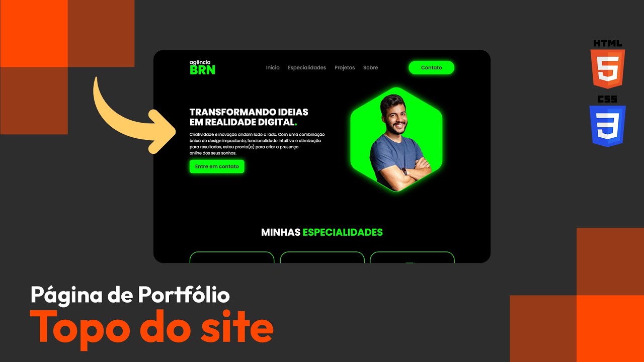 vai lá para Game Maker seja bem-vinda a mais um vídeo do intelegia meu nome é Bruno Rodrigues e nesse vídeo né e nos próximos eu quero te ensinar a criar uma página de portfólio personalizadas Se liga só como é que ficou esse projeto eu tenho aqui né esse site desenvolvido inteiramente com HTML e com CS ele possui algumas funcionalidades que podem ser muito úteis para você que quer Criar o seu site de portfólio para poder já começar a prospectar algum serviço sabe Então olha só quem a gente tem a página inicial onde a gente faz uma pequena frase né Para dar aquela introdução já de impacto temos aqui as nossas especialidades né as habilidades que a gente tem para que a gente possa estar criando Tem um aqui também um sobre né que fala sobre a gente obviamente que esse aqui não sou eu eu baixei essa imagem de um banco de imagens né as nossas redes sociais temos também o nosso portfólio onde a gente pode colocar os projetos que quiser e ainda por cima tem um efeito de rolagem Que Eu Já ensinei a criar aqui no canal Mas além disso a gente também vai colocar esse over que mostra o nome do projeto Tá vendo só que massa rolando aqui mais embaixo ó nós temos aqui um formulário de contato que você pode personalizar da forma que quiser e também o nosso rodapé é uma página simples mas que vai quebrar bastante o galho para você que já quer começar a entrar de vez nesse mundo do desenvolvimento web é ótimo também para praticar e pegar umas ideias Tá bom então vem comigo que no caminho eu te explico como criar uma página de portfólio personalizada bom então manda massa já estou aqui no visual Studio code né e eu vou pegar desde o início para que a gente comece a fazer o desenvolvimento do site é importante que você crie uma pasta única para esse projeto tá dentro dessa pasta vamos contar algumas imagens que a gente vai pegando aos poucos mas é lá dentro onde vai ficar o projeto principal que a gente vai criar agora OK então já vou começar aqui ó criando o meu index. html e aqui no index HTML para eu criar a estrutura base do HTML eu vou apenas digitar o sinal de exclamação e apertar enter que aí ó ele já vai gerar a estrutura da HTML5 para mim já vou fazer algumas mudanças por exemplo aqui o Lang eu vou colocar aqui é português brasileiro né pt br E aqui no documento eu vou colocar apenas o nome né da do meu portfólio porque eu quero colocar lá no meu caso eu vou chamar de agência BRM brn para você que não sabe é Bruno sem as vogais e pronto por enquanto a gente vai deixar o HTML assim então agora a gente vai analisar a estrutura que a gente vai fazer para que a gente já comece a se encontrar vou voltar aqui no meu projeto original e hoje eu vou começar trabalhando aqui com esse cabeçalho eu já vejo logo de cara que esse cabeçalho é dividido em três partes Onde fica logo Onde fica o menu e onde fica esse botão de contato né para ter um destaque melhor então a gente vai fazer o seguinte a gente vai criar um reader né a nossa tag header e vai dividir ela em três partes e vai trabalhar com display Flex nela para que elas fiquem bem alinhadinhas assim OK então olha só como é que a gente vai fazer aqui dentro do meu Body eu vou chamar a tag header e aqui dentro da tag header eu vou adicionar uma tag que vai limitar as laterais do meu site porque se você prestar atenção ó Note que o meu site né as laterais dos elementos eles não encostam do lado esquerdo e do lado direito não ficam coladas ela sempre tem um respiro Então a gente vai criar né esses limites através de uma dívida que vai ter uma classe específica Então vou criar aqui a minha Dive ponto interface Aí você coloca a classe que você quiser eu vou utilizar interface e por costume né Por boas práticas eu sempre comento aonde essa tag se fecha dessa forma aqui aí aqui eu já sei que aqui essa dívida essa barra diver serve para fechar a classe interface aí você pode estar fazendo isso também para você não se perder no código porque esse código aqui é um pouquinho grande um pouco diferente do que a gente já criou aqui no canal Beleza depois que eu criei a interface chegou a hora de trabalhar com a logo então eu vou chamar a classe ponto logo né Se eu colocar sua ponto e o nome da classe ela já cria uma dívida para mim e aqui dentro dessa divlogo eu vou colocar o meu logotipo e por padrão né geralmente a logo que fica no menu sempre que a gente clica em cima dela ela volta para a página inicial do nosso site então eu vou colocar aqui uma tag de link né a tag a que eu vou deixar vazia por enquanto mas dentro dessa tag a eu vou chamar a tag IMG porque aí eu vou chamar a imagem da logo né onde é que ela se encontra aí beleza eu tô aqui agora dentro da pasta do meu projeto né porque eu vou criar a pasta onde vou ficar as imagens do meu projeto então eu vou fazer o seguinte eu vou clicar com o botão direito vem novo e vou criar uma nova pasta essa pasta vai se chamar images em inglês aí dentro dela eu vou colocar a imagem que eu quero utilizar como logo do meu site que vai ser essa daqui ok Aí você coloca logo o que você quiser aí de volta aqui no meu código né dentro desse src eu vou apertar contra o espaço e vou vir aqui na pasta de imagens e eu vou selecionar aqui a minha logo. png aqui o texto alternativo vou colocar apenas logo da agência BRM e pronto depois da minha logo né configurada Eu agora vou criar um menu e esse menu vai ficar dentro da tag Neve então eu vou aqui a tag né de navegação eu vou dar uma classe para ela também a classe dela vai ser menu desktop porque a gente também vai deixar esse nosso portfólio responsivo tá então por isso que eu já tô atribuindo essa classe minuto desktop porque lá na frente a gente vai ter a classe menu mobile Mas isso é mais para frente ok e pronto dentro aqui da minha tag Neve eu vou chamar uma ueli das listas não ordenadas e dentro dessas wea