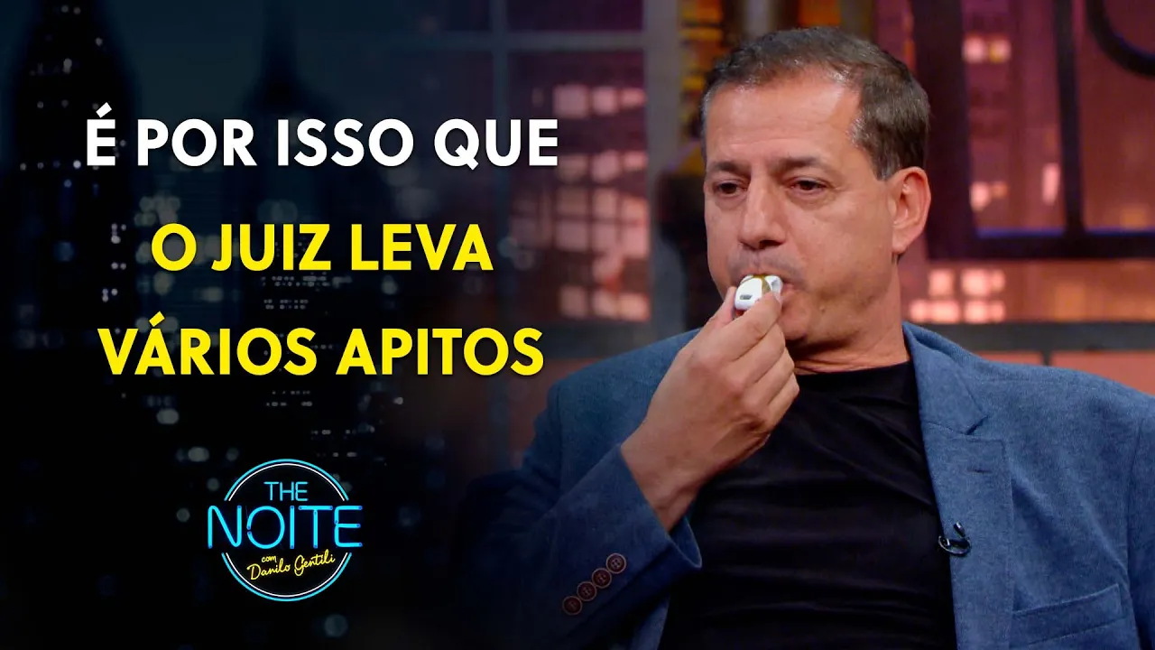 presente Olha só agora eu tenho Ten o cartão e tenho apito Tá bom já vou entrar na sua para pitar da hora por que que você quis ser juiz Hein Da onde que veio a ideia é essa é bacana geralmente de futebol é jogador frustrado sabe o cara quis ser jogador de futebol não deu certo e falou quero est lá naquela naquela brincadeira né aí vai lá faz o curso e começa a pitar né Aí você vai perguntar Eu sou frustrado porque eu queria jogar frustrado queria jogar bola não eu organizava os campeonatos sabe orava