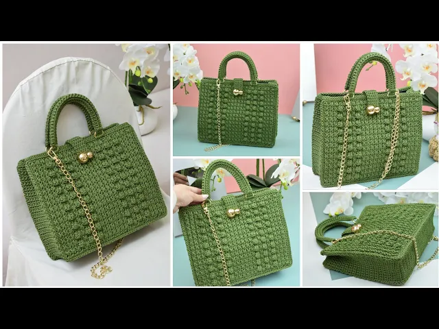 Шикарная вязаная сумка своими руками Сумка из шнура с узором шишечки