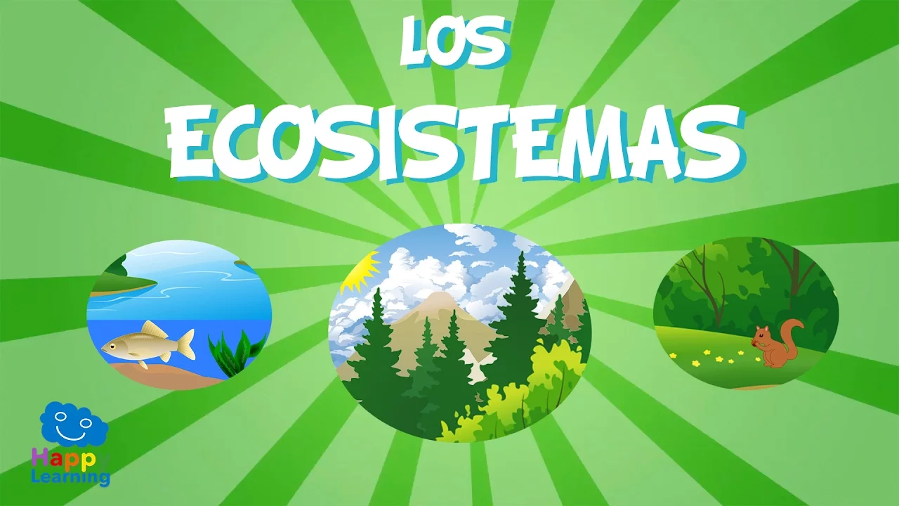 [Música] [Aplausos] [Música] Hola amigos Bienvenidos a un nuevo vídeo de Happy learning hoy vamos a conocer los ecosistemas Pero sabes qué es un ecosistema un ecosistema es un conjunto formado por un espacio determinado y todos los seres vivos que lo habitan por ejemplo este río es un ecosistema y está formado por el agua el fondo las orillas y todos los seres vivos que viven en él como esta rana estos nenúfares o este tímido pato que se esconde cuando nos ve un ecosistema puede ser muy pequeño como esta charca o muy grande como este enorme desierto