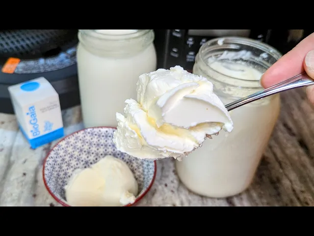 can see this batch turned out absolutely perfect there's no way separation whatsoever it's super thick and creamy all the way through just like a Greek yogurt this is going to be super satisfying get ready oh look at how incredible that looks so thick so creamy no straining required whatsoever so if you do get the curds and whey effect on your first batch don't be worried just do another batch and you should get a super creamy result like this I will put links down below for all the different ingredients and things that I used for this