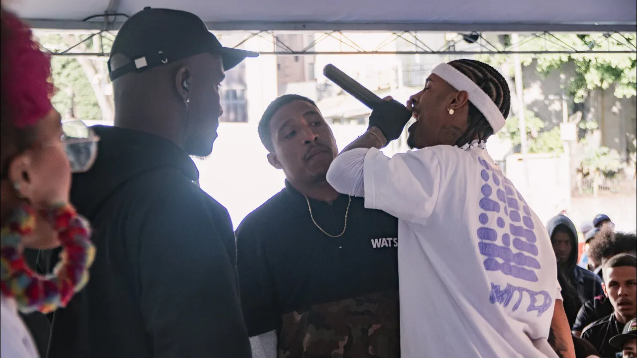 e pode chegar mais nego Eric versus do baile nego Eric na minha esquerda do baile na minha direita e aí Dj tá tudo certo a gente vai começar do baile vai começar a cultura de fato improvisação diga a ele [Aplausos] sabe negão eu tenho diretriz agora tu vai trombar o negrão aí que vai te mostrar como é que faz a cultura como que faz o Henrique literatura calma aí que eu não vou perder por uma travada igualzinho a trava sabe agora que já tá engatilhada independente que eu vou mandar meu proceder você sabe Eu rimo