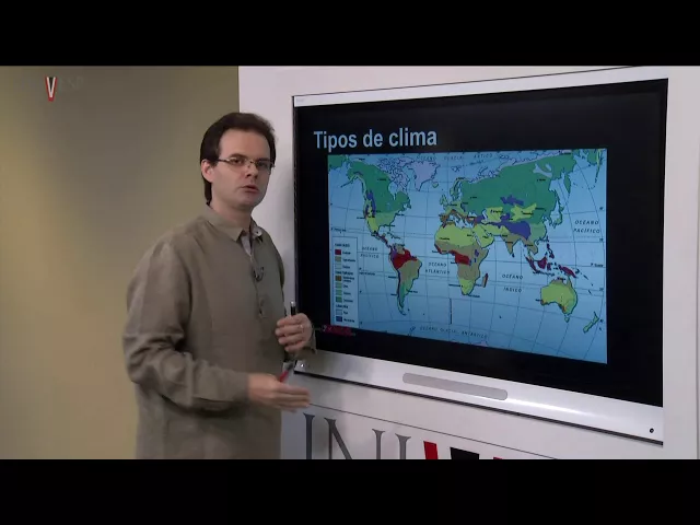 água já caracteriza uma situação de maior abundância de água como por exemplo florestas tropicais tendo então que terá os tipos de clima divididos em kent temperado e frio a partir desta animação nós podemos saber como é feito essa medição numa escala global e ao mesmo tempo conseguir identificar os tipos climáticos propriamente ditos por exemplo de vermelho aqui nós temos o clima equatorial tropical úmido tropical seco e desértico e onde está concentrado exatamente justamente na região equatorial é onde incide maior radiação solar e consequentemente temos mais fenômenos de chuva também e a temperatura é maior no