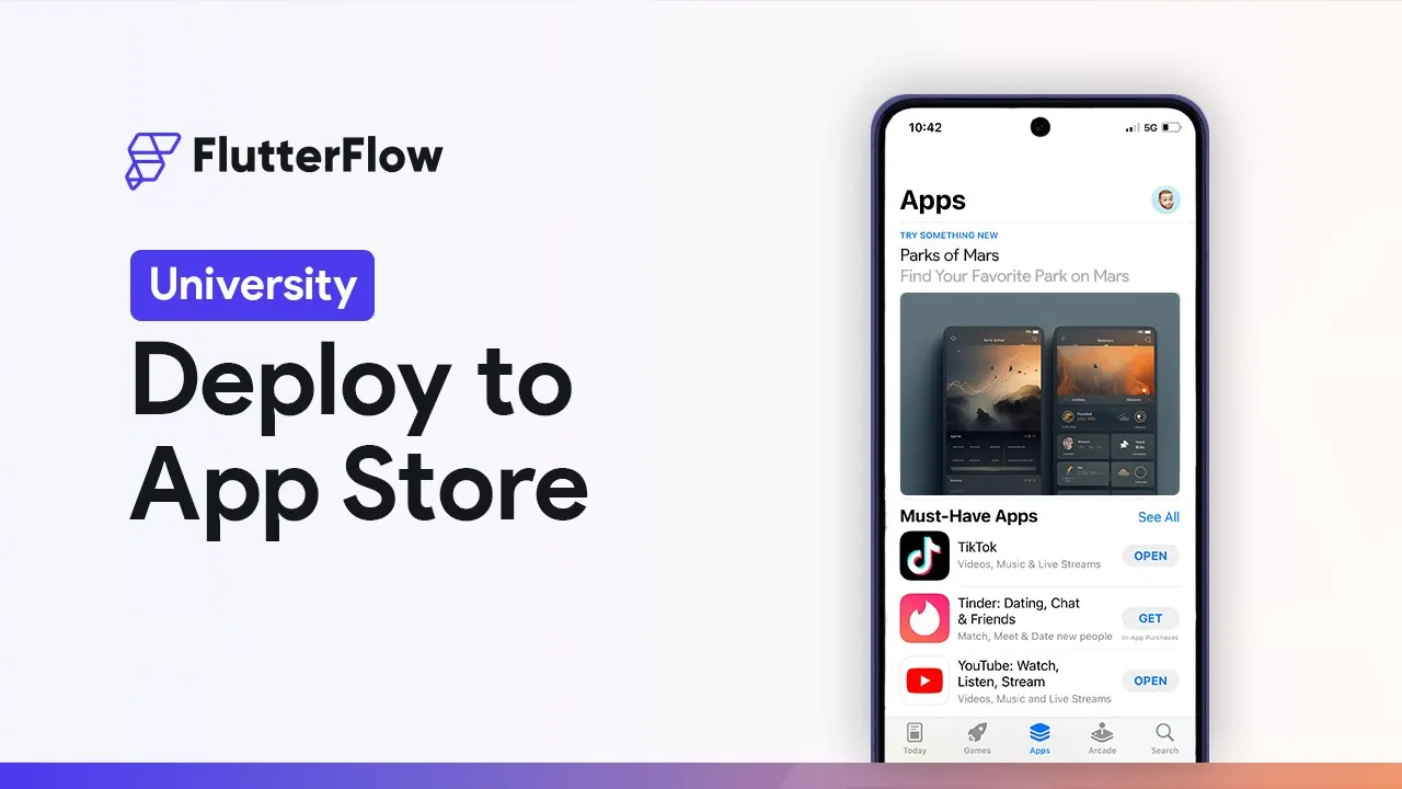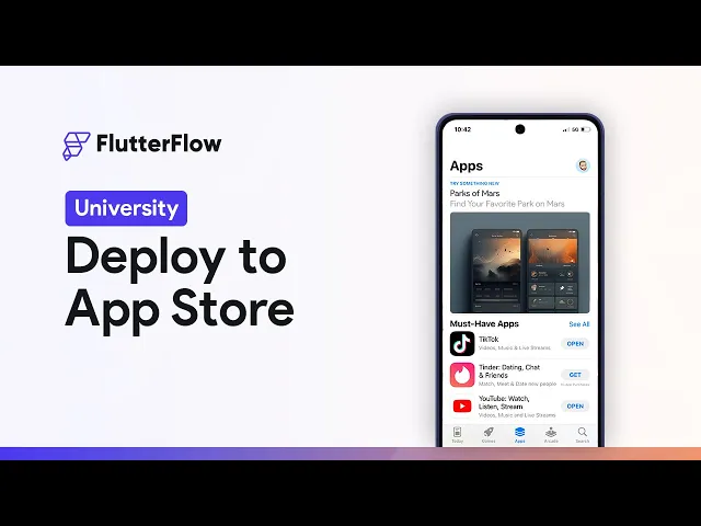 in app store connect so let's jump over there and that's this right here so copy that and paste it in beautiful and that's it we are ready to deploy to the App Store now keep in mind that deploying to the App Store store means sending our app into App Store connect it's not actually publishing the app for the public we'll need to do a few more things after we deploy it to App Store connect so we can deploy it now so flutter flow is just going to tell you that if we were in the process