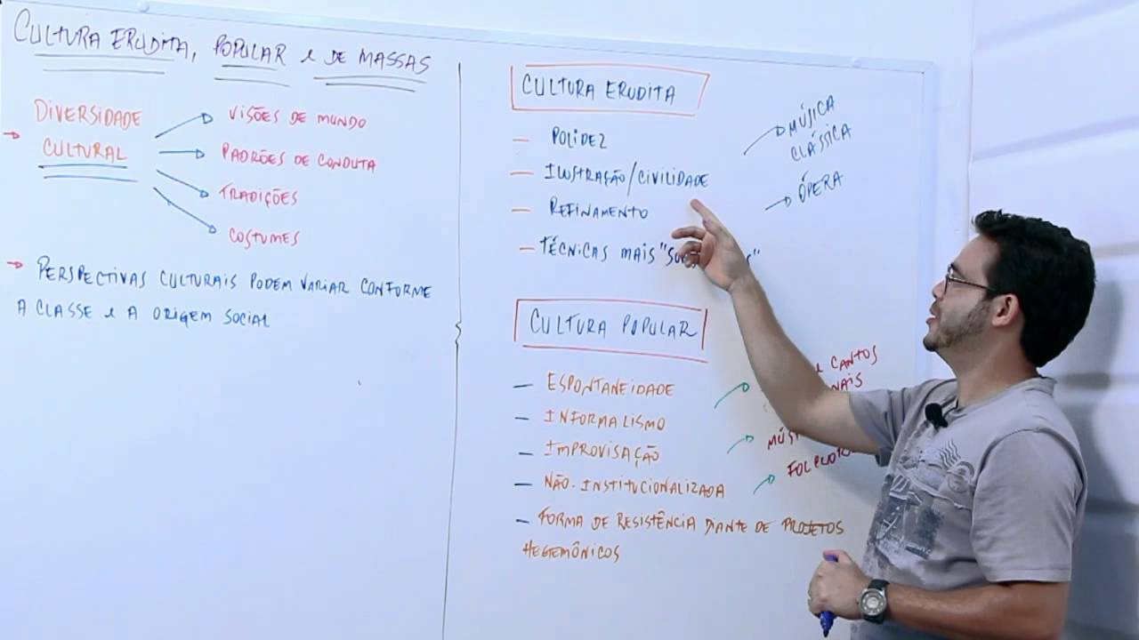 [Música] Olá alunos Olá alunas sou o professor Júlio da de sociologia Nesta aula discutiremos a cultura popular erudita de massas né Vamos considerar primeiro a realidade social é repleta por uma diversidade cultural seja num plano mais internacionalizado ou globalizado Mas mesmo dentro de realidades mais locais como num país ou uma região existe sempre uma diversidade cultural né que pode ser entendida como visões de mundo padrões de Conduta tradições costumes modos de dar sentido e valor às coisas e às práticas sociais tá também consideraremos agora aqui que as perspectivas culturais podem variar como eu falei além