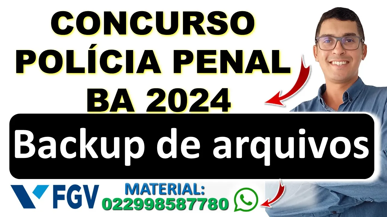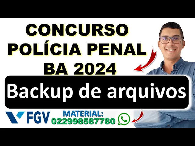 Olá seja bem-vindo ao meu canal de informática para concursos públicos meu nome é romilton Júnior sou professor de informática para concurso e nesse vídeo eu vou dar mais uma aula gratuita de informática para o concurso da Polícia penal da Bahia que será a banca FGV que irá elaborar a prova nessa aula eu vou falar sobre backup de arquivos se você não assistiu as aulas anteriores o link está abaixo na descrição do vídeo se você quiser adquirir meu material de informática com foco na banca FGV e também provas anteriores da banca FGV é só entrar em