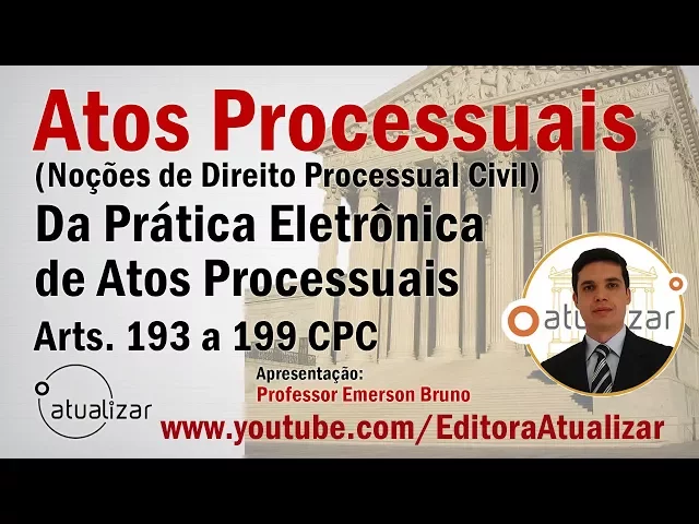 [Música] Olá amigos registor atualizar de volta com o nosso curso de noções de Direito Processual Civil você que se prepara aí pro TRF pro concurso do TRF pro concurso do TJ tem que estudar toda a parte de Atos processuais e nós vamos para a sessão dois falar da prática eletrônica de Atos processuais uma questão recorrente tendo em vista o pje o processo judicial eletrônico que está em implantação em todo o judiciário brasileiro tá então vejam só o que que dispõe O Código de Processo Civil sobre a prática eletrônica de Atos processuais artigo 193 os atos