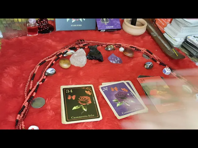de oportunidades fora de fala também algo fora do habitual o dar um exemplo também a pessoa trabalha de telemarketing por exemplo Oi e Ela tá desempregada tá procurando só telemarketing E saiu essa carta tipo contratos Mas vem mostrando algo que pode ser fora do que ela está acostumada a fazer entender o a carta 34 casamento feliz é uma carta positiva ela tem como palavras-chaves contemplação dois de algo para de boa parceria em prol de um mesmo ideal fala de União namoro casamento algo sério fala que é confiável certa situação é confiável fala que são coisas