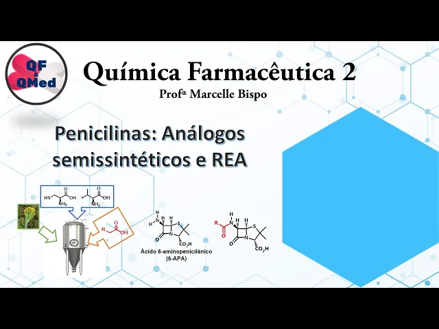 e aí pessoal beleza aqui quem faz a professora martelli não de hoje nós vamos continuar estudando sobre as penicilinas no entanto nossa enfoque se dará no processo de obtenção de derivados sempre sintéticos essa causa de falam assim como no estudo de relação estrutura-atividade desta classe de antibióticos que fazer um pouco mais sobre isso bora lá podem fazer então pessoal existem cerca de uma dezena de penicilinas disponíveis no mercado nós vamos lá aula passada que elas se diferenciam pelas cadeias laterais e que dependendo das características ester eletrônicas as propriedades farmacocinética e farmacodinâmica das penicilinas podem ser