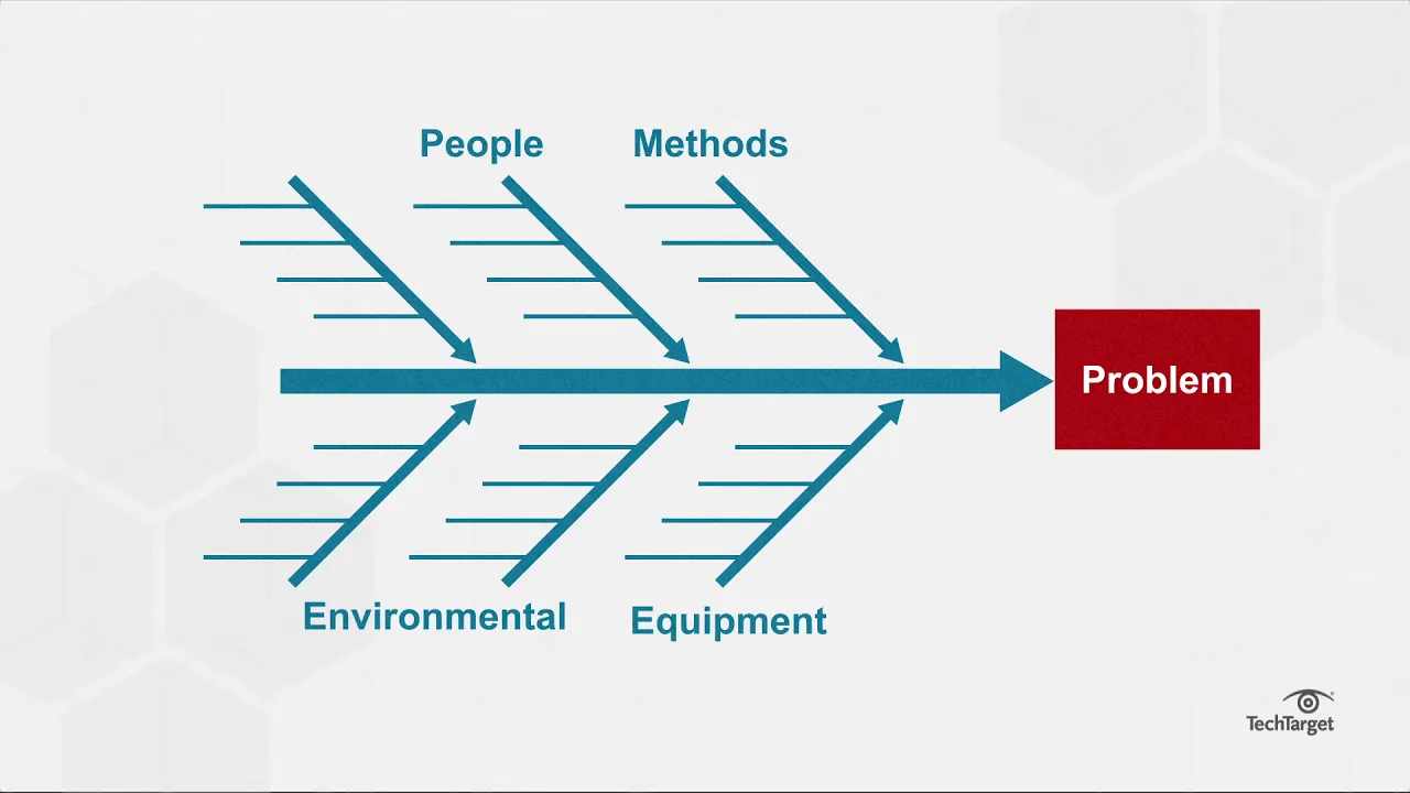 Jamison Cush: A fishbone diagram, also known as a cause and effect diagram, is a way to visualize cause, named for its resemblance to a fish skeleton. It's useful for product development in troubleshooting processes, as it identifies the causes of a problem, instead of merely treating the symptoms to create Fishbone diagrams list the problem in a box, aka the fish head. The backbone is a horizontal arrow pointing to the head.