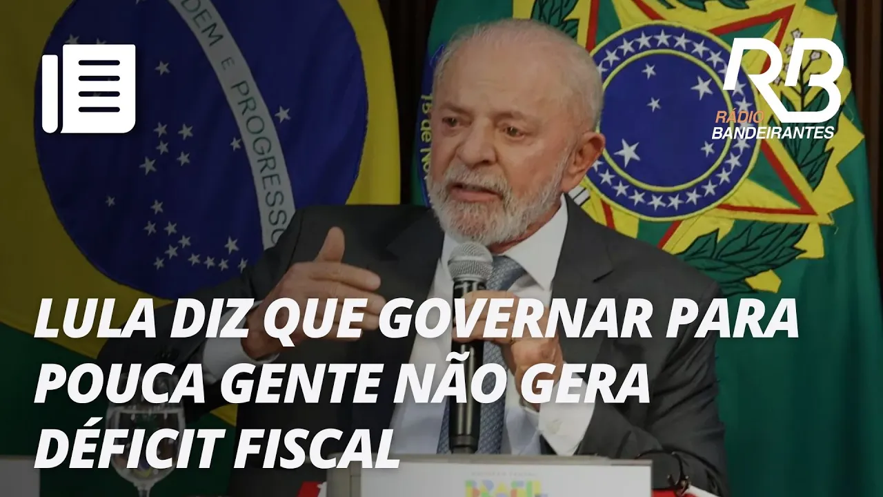 [Música] presidente Lula ironiza e diz que vai governar para pouca gente não gerar déficit fiscal a fala do peti de uma afetada nos críticos das contas públicas do governo que vem alertando para o aumento da dívida pública a declaração foi dada durante cerimônia da entrega do prêmio selo Nacional compromisso com alfabetização em Brasília vamos ver o que o Lula disse esse país teve governante que achava que o país deveria ser governado apenas 35% da população para 35% da população a gente não teria problema de orçamento a gente não teria problema de Déficit fiscal porque ia
