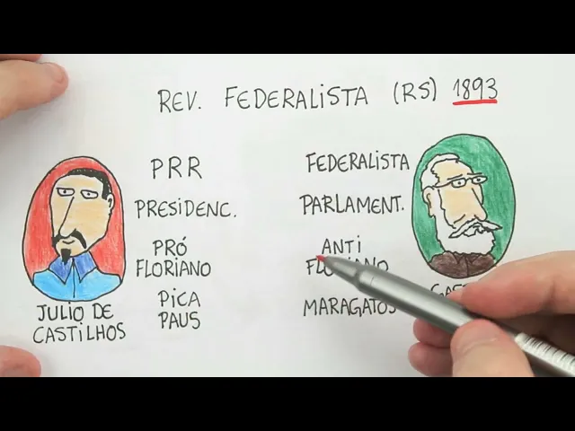 na República que estava se consolidando no Brasil tá com isso o Júlio de Castilhos o Partido Republicano rio-grandense era pró Floriano Peixoto eles defendiam o presidente Floriano Peixoto tá eles tinham o apelido de pic paus porque ele o uniforme de guerra deles era um chapéu com um bico parecido com pica-pau que é uma ave que eh existe no Rio Grande do Sul então características de quem estava no poder era o presidente do Rio Grande do Sul Júlio de Castilhos do Partido Republicano que defendia o presidencialismo nos moldes que estava sendo colocado em prática no Brasil