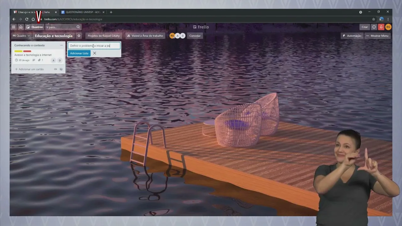 como realizaremos esse projeto como poderemos dividir as atividades entre os membros do grupo como apresentaremos esse projeto quando quando realizaremos as etapas planejadas quem quem realizará cada uma das atividades com que quais serão os recursos materiais e humanos para garantir a execução desse projeto depois passamos à etapa de realmente executar o projeto com a criação em geral como nós falamos de um produto bem e aí é que vem o tema da nossa aula ou seja vamos conhecer as possibilidades da tecnologia auxiliar todo esse planejamento dos projetos vamos aprender hoje a respeito do trelo Esta é