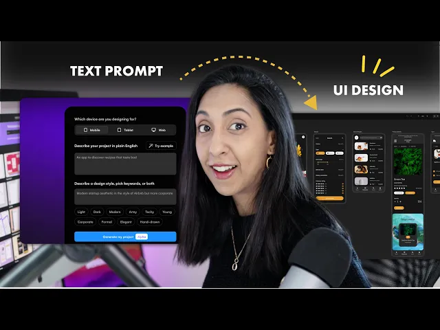 or web and then you just type in your prompt the same way you would in chat GPT for example and then you can add some descriptive keywords you can describe the style so you know if you're a designer you can say that you know you want everything to be rounded Corners with soft Shadows lots of white space things like that and then you can add some of these tags here so we can just try an example that they have as well so let's do that and see what it generates so I'm going to hit try