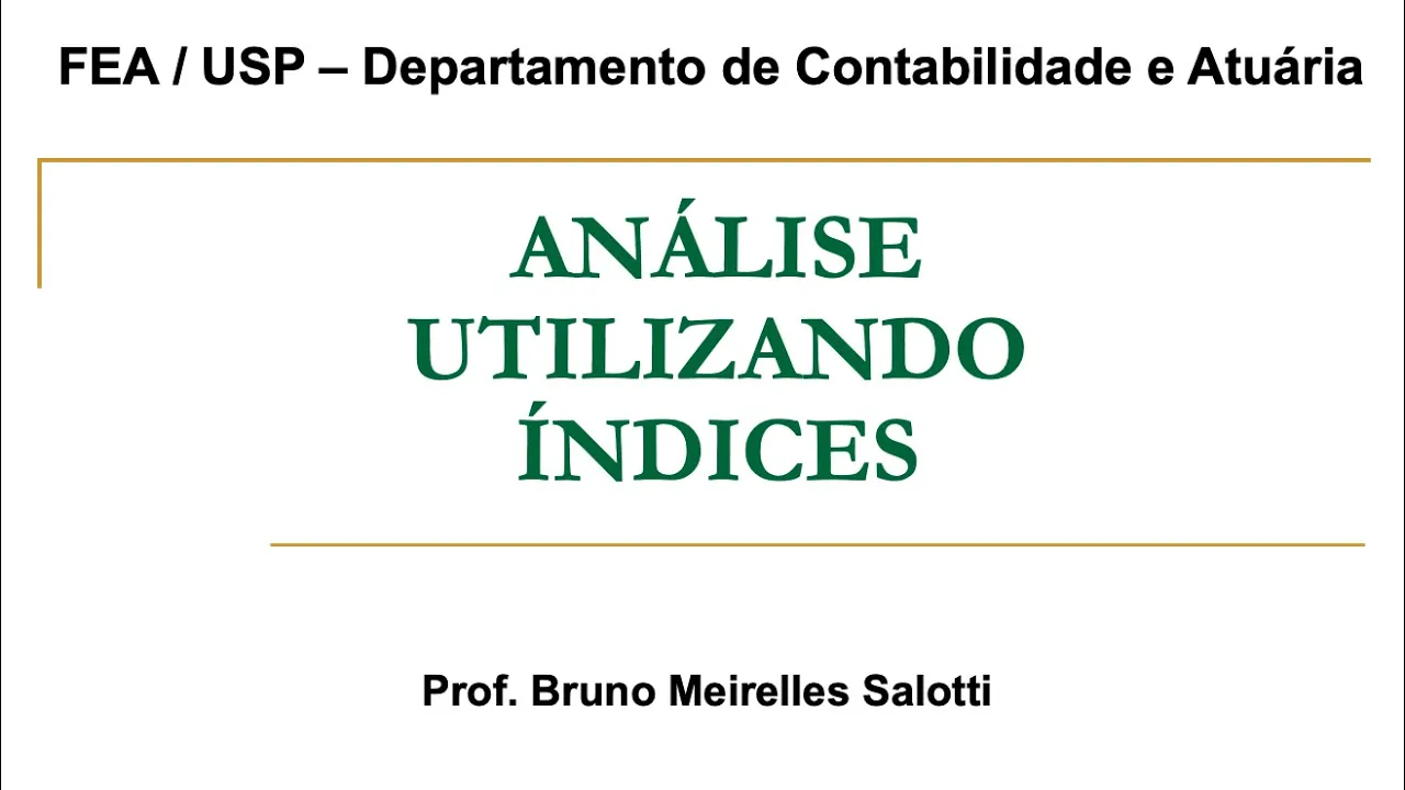 Olá bem-vindos nesta vídeo-aula vamos tratar do tema análise utilizando índices é salva tem como referências o livro de análise tática das demonstrações contábeis e como referências complementares o livro do professor Assaf e também do Matarazzo a ideia dessa discussão Inicial é explicar a ideia de se fazer análise de índices os índices que nós vamos utilizar são relações calculados a partir dos números obtidos com as demonstrações contábeis então por exemplo se a gente compara um saldo de um passivo total da empresa curto e de longo prazo com o total do ativo a gente obtém uma relação