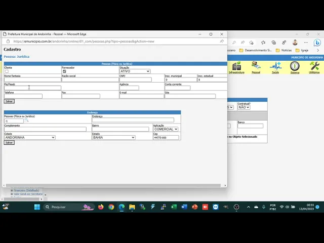 do fornecedor preenche tudo certinho e clica em salvar está finalizado o cadastro do fornecedor lembrando cadastro a parte de cima primeiro em salvar depois para esse a parte de baixo salvando nesse botãozinho salvar também o endereço Ok a dica aí do cadastro tem uma pessoa física ou pessoa Ok um abraço