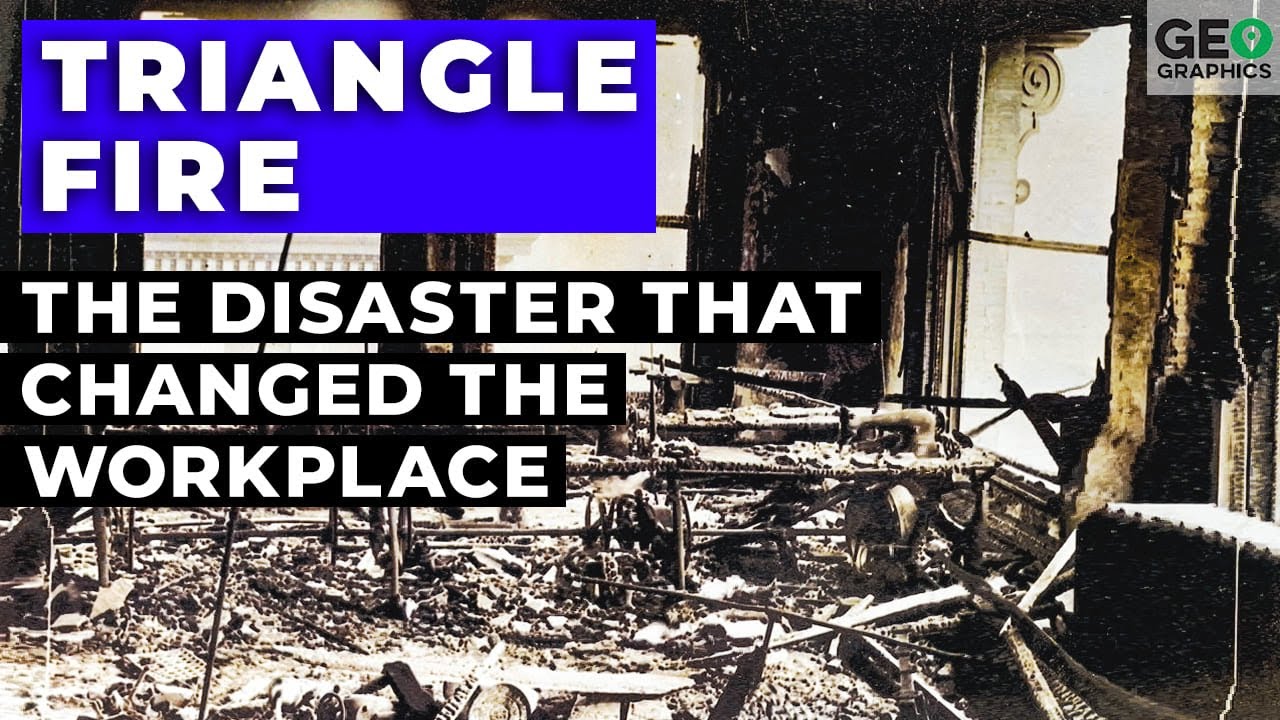 [Music] it was late in the afternoon on a beautiful spring Saturday March 25th 1911 4:40 p.m. to be exact nearly quitting time at the Triangle shirt waste Factory in New York's greinwich village where 500 workers mostly young Italian and Jewish women and girls got ready to collect their pay and go home someone dropped a match or a cigarette and within minutes the factory which occupied the top three floors of a 10-story building became an inferno fire ladders which reached only six floors were useless the fire escape collapsed under the weight of desperate workers trying to