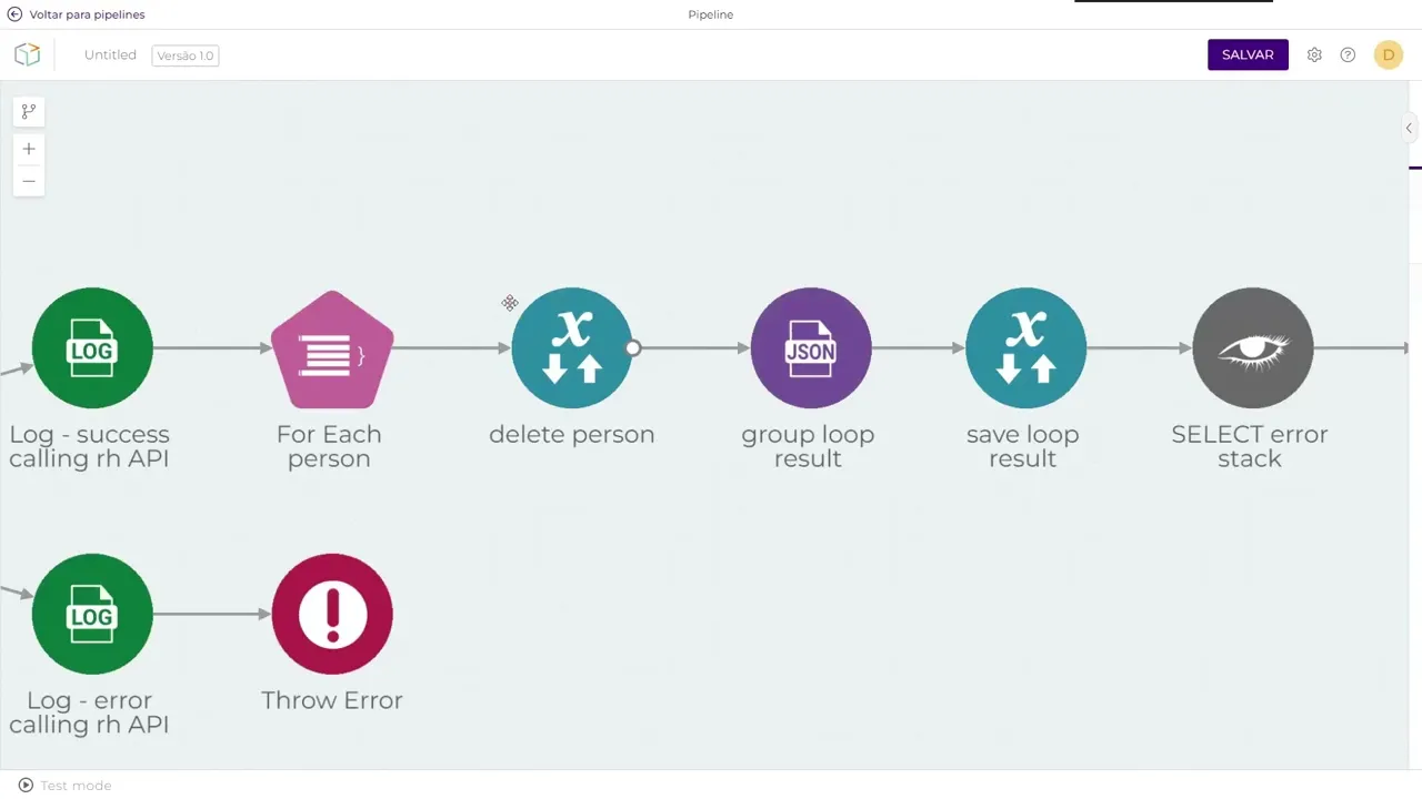 de evento Vou salvar esse pipeline vou chamar ele de scheduler consulta indom também no grupo de salvar e aqui estamos quase finalizando a primeira etapa do desacoplamento aqui dentro que eu falei temos o o Exception do farit que tem um detalhe muito importante todo o erro de execução aqui todo esse controle de execução ele é utilizado para gerar o resume de execução desse pipeline mas também precisamos no pipeline de processamento esse aqui criar uma forma de salvar os erros uma vez que caso esses erros sejam Salvados eu preciso reprocessar automaticamente E para isso a gente