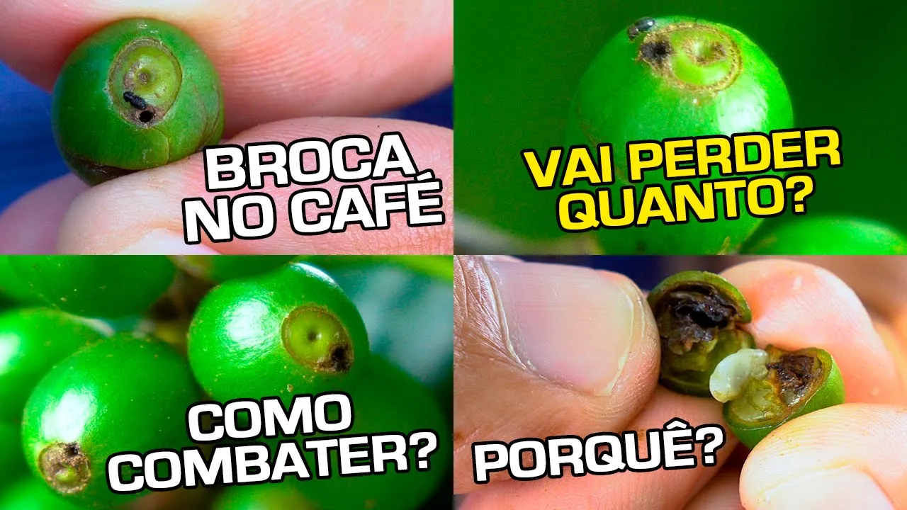 o Olá meus amigos cafeicultores hoje vamos conversar sobre um pequeno inseto muito conhecido os cafeicultores tenhamos que ele passa até despercebido mas tem ano como esse que ele aparece e dá muita dor de cabeça o controle não é fácil pois a praga penetra dentro do fruto e lá dentro ela fica protegida e é praticamente impossível controlar nesse momento e nós cafeicultores temos que assistir um inseto cada dia brocando os nossos frutos como sempre tem batido na mesma tecla uma nesse moderna e eficiente na cafeicultura deve ser feito sempre de forma preventiva ou seja sempre antes