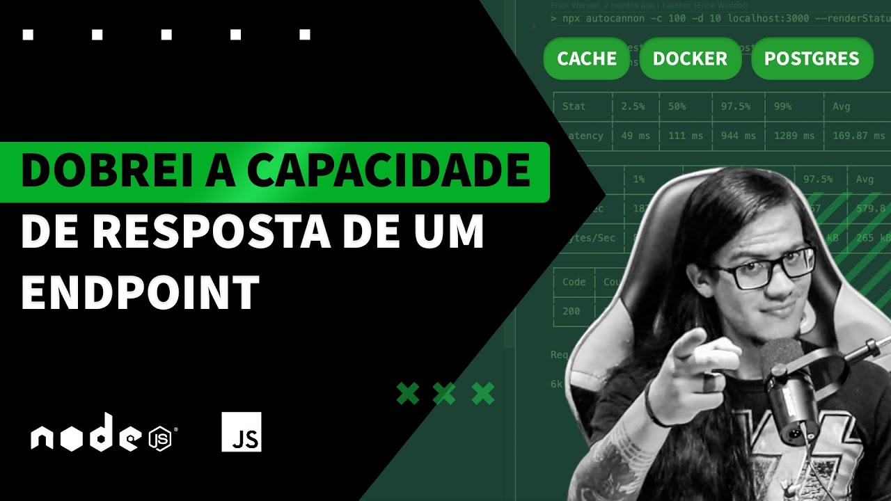 e você vai aprender esse vídeo uma série de técnicas para turbinar suas aplicações node JS com poucas alterações vou te mostrar como usar um modo interno do node. js para aumentar a capacidade da sua aplicação e claro como você pode fazer um benchmark rodar o teste de carga vou também te explicar sobre gerenciamento de erros e como fazer com que cópia de aplicações se recuperam sozinhas para que tudo isso faça você gastar menos dinheiro em servidores explorando o máximo do potencial Donald s e aí beleza eu sou Eric vendeu e o vídeo de hoje é um experimento para mostrar como pequenas alterações podem resultar em grandes melhorias hoje eu vou falar sobre como multiplicar a capacidade do node. js adicionando somente 10 linhas de código então já abri o seu editor de código java script pega um drinque aí mano e bora pro vídeo com o E aí [Música] você já sabe né não deixou like no vídeo ainda já deixa aquele like no vídeo se inscreve aqui no canal que mano isso fortalece demais o trabalho que eu faço aqui no YouTube toda semana tem conteúdo novo aqui no canal e você pode sugerir conteúdos que você quer aprender escrevendo diretamente aqui nos comentários Eu geralmente leio todos os comentários e claro adicionou na fila dos conteúdos aqui no canal e todos os dentes das minhas redes sociais e o código fonte dessa aula já estão aqui na descrição para você acessar após o vídeo beleza eu eu trabalhando focado em performance de aplicações Django escrito há alguns anos e fiz consultoria para grandes players brasileiros de vários setores eu acompanho regularmente as histórias e as dificuldades esses clientes e tento sempre sugerir pequenas melhorias que podem fazer uma grande diferença em aplicações existentes existem inúmeras formas de explorar o potencial máximo Donald s no meu treinamento do exército Expert eu mostro várias dessas maneiras seja aumentando a capacidade máxima de uso de memória da plataforma seja gerando novos processos seja gerando novas Olá seja clonando o processo ou até com que vermelho Sky as tem um vídeo aqui no canal então like tá no card o que eu quero te mostrar hoje é um experimento que eu fiz baseado em um artigo que tem até um passo a passo nós vamos criar uma web mais simples que simulam processo que bloqueia ou não JS Então nós vamos rodar o teste de carga Depois eu vou te mostrar a técnica para fazer com que esses processos se multipliquem e sejam reativos ou seja se o processo morrer a aplicação será inteligente o bastante para criar novos processos automaticamente Uptime geralmente é um mistério para vários deves o Uptime ele está diretamente ligado com o que acontece com a sua aplicação Se der algum erro ou seja você tem uma aplicação no ar sendo bombardeada por tênis e mesmo que um erro inesperado aconteça você precisa continuar recebendo e respondendo clientes aí enquanto se recupera do problema aí vem a pergunta de um milhão de dólares como garantir independente do que aconteça Você sempre tem uma cópia da aplicação responder para novos clientes aquele dia mais encontra uma página disponível seu problema e aí como é que faz o melhor e como criar cópias do nosso programa para aumentar a disponibilidade do nosso serviço sem precisar instalar qualquer outra biblioteca ou até mexer infraestrutura em onde é se você consegue ouvir por eventos específicos sobre quando alguém pediu para encerrar o problema e claro quando algum erro inesperado aconteceu e é a partir desses eventos que nós conseguimos encerrar o programa corretamente usando a técnica de Greys Foot Down e gerar novas cópias caso o programa teremos alcançando assim o tão sonhado zero Dawn time se você não viu o vídeo que eu fiz sobre a técnica de Greys feudal não tem problema você pode ver logo após esse vídeo mas ele é um complemento para essa aula a técnica de hoje e o Grace jot Down fazem parte de um combo perfeito para você que quer escalar desenvolver aplicações tolerantes a falhas e se você ainda não viu esse vídeo ele também tá aqui no card para você ver Depois em node.