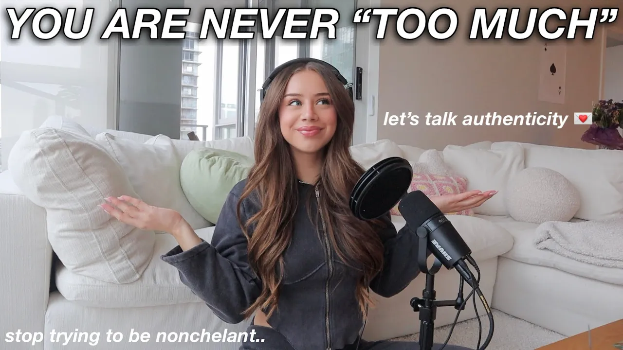 often think about is the fact that my whole career and the reason I am in the places that I am in now or the reason why I live in apartment that I live in the reason why I am financially free or abundant or have been able to travel the places I've wanted to been able to make a career off of social media is by being myself online by showing my personality online by being authentic by being vulnerable by literally being too much and I remember when I was younger I used to always get told that