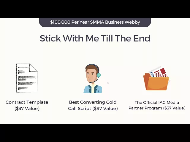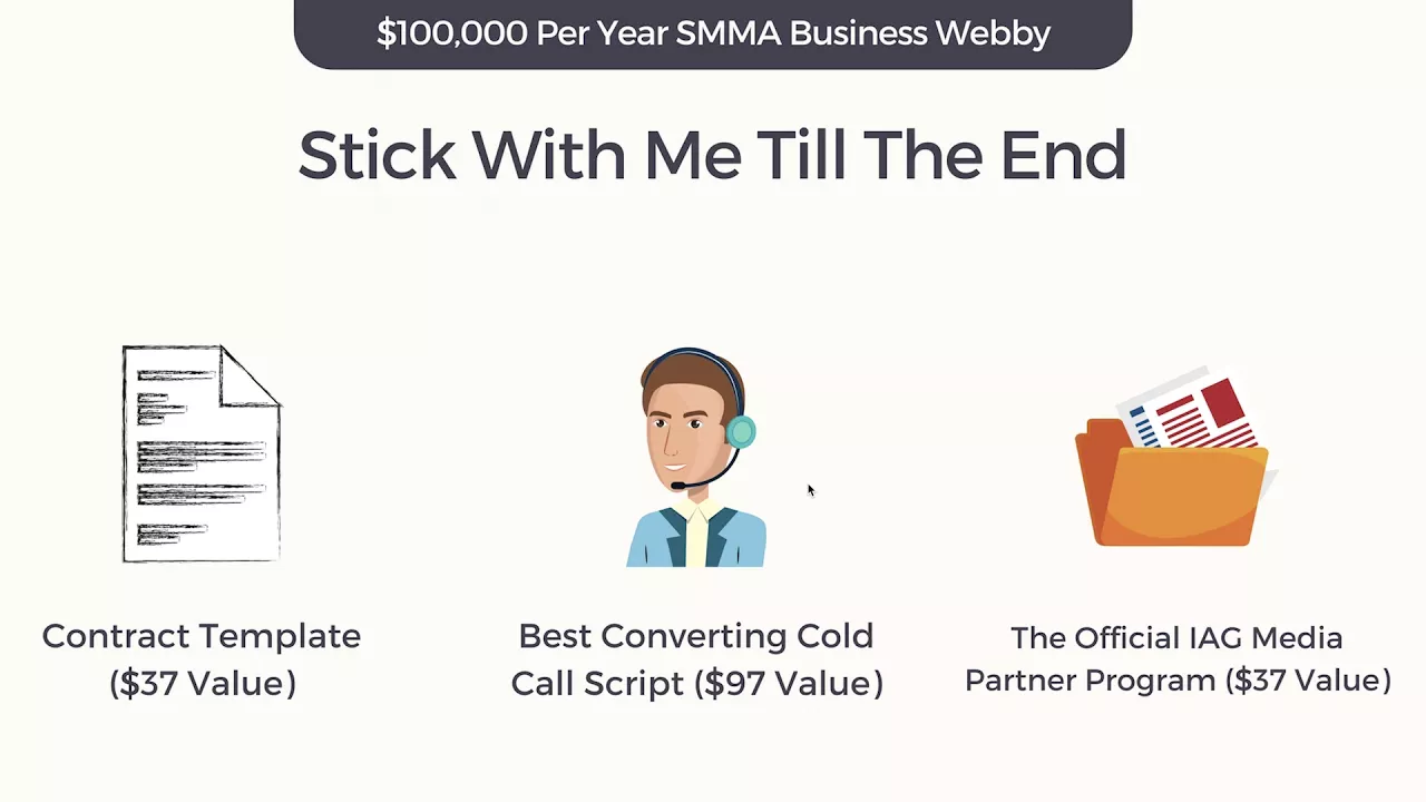 template plug and play that you can use I'm gonna be giving guys the best converting cold call script guys It's the this is a cold call script that has been crafted from probably two to three four thousand different cold calls right between myself and my sales guy and I'll be getting into that in a bit and I'm gonna be giving you guys the official IAG media partner program guys this is a referral program on steroids and this is how you get a you know a seven thousand dollar-a-month client to refer you to three more seven