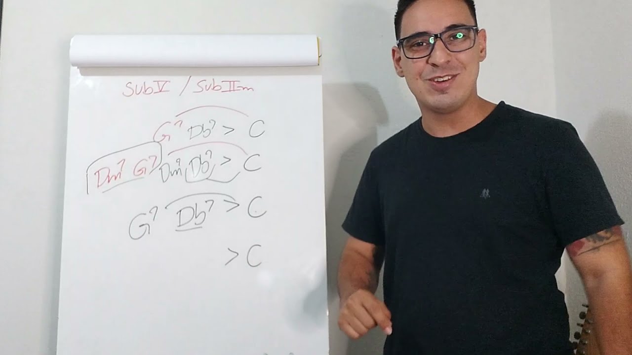 [Música] interiorizar essas possibilidades que a gente tem que vestir o Acorde ele deixar o Acorde completo eu tenho a sua tétrade a nona dessa primeira aumentada décima terceira [Música] [Música] é só super bem agora é interessante que se eu tenho um acorde 5 eu posso posso criar um dois para esse 5 certo não é o 2 do 5 no caso em vez como se eu tivesse criando uma Cadência 251 só que eu tô querendo um dois para substituição por título resolvendo certo isso é muito comum por exemplo [Música] que eu tenho o dois para substituição