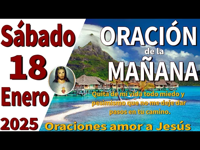 oración de la mañana del día sábado 18 de enero de 2025 en el nombre del padre del hijo del espíritu santo amén glorioso señor una vez más me levanto para Elevar mi mirada al cielo y expresarte con mis labios toda mi gratitud hoy me bendices con un nuevo día y es una real prueba de tu grandeza Gracias padre Bendito por forjar mis caminos en tu sagradas manos Pues solo tú eres santo Digno y el punto central de mi vida mi rey de amor Permíteme llenar este día de grandes oportunidades este día será más que especial