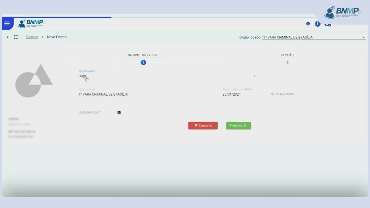 [Música] para localizar o cadastro da pessoa em pessoas cadastradas Clique na opção ver todas no campo pesquisar digite o nome da pessoa ou outro dado conhecido e Clique na lupa identificado o cadastro da pessoa clique no menu localizado no canto direito da tela e selecione a opção incluir evento em tipo de evento selecione fuga informe o número do processo e a data da Fuga o sistema apresentará as informações lançadas para fins de revisão Caso haja necessidade de retificação de algum dado utilize o botão anterior inexistindo a necessidade de alterações utilize o botão finalizar evento evento