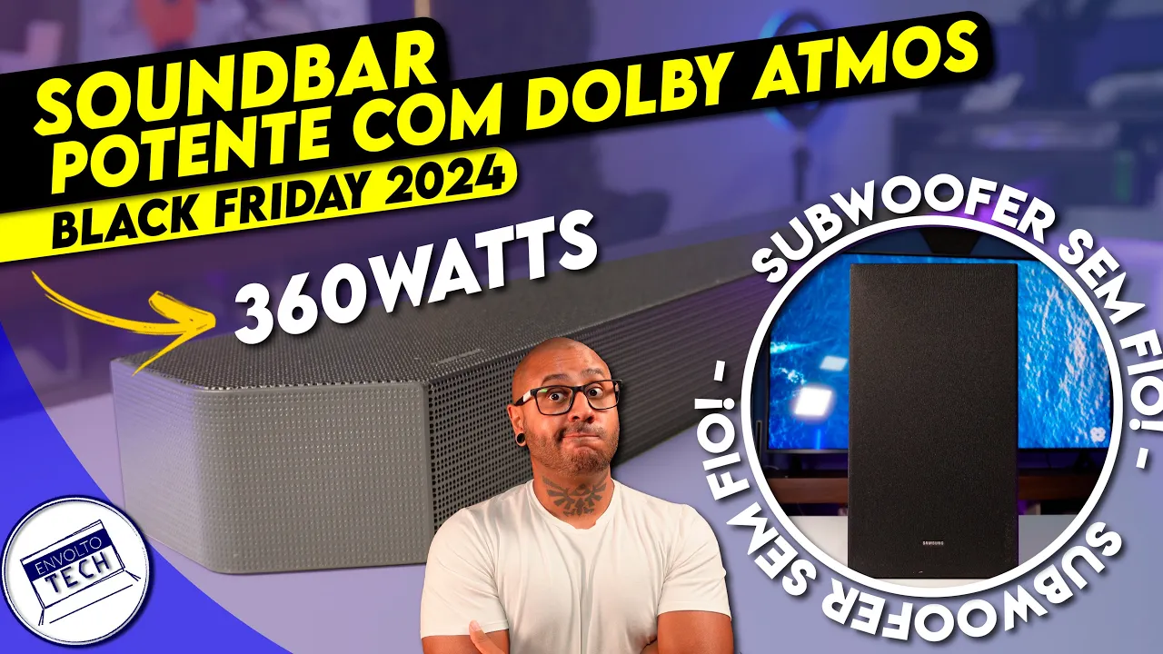[Música] a q600 c da Samsung é uma sound bar para quem deseja algo a mais que o básico e se você tá a fim de melhorar a experiência de imersão com a sua TV e ter mais qualidade nos filmes já que o áudio também é tão importante quanto a imagem pra experiência final nesse vídeo eu vou te falar o por o modelo q600 c da Samsung é uma boa opção para isso o meu nome é Rafael e seja muito bem bemind ao canal em [Música] voltech na descrição eu tô deixando o link de acesso a um grupo de descontos exclusivo aqui do canal e para começar deixa eu te falar sobre as especificações e tecnologias que essa são de bar vai te entregar a q 600c faz parte da linha q da marca linha essa de produtos mais Premium sendo que a q600 c é a mais básica dessa linha porém mesmo mais básica ela fica acima da linha mais básica cujo modelo b550 faz parte sendo essa a b550 a mais em conta e a mais conhecida acredito eu mas Voltando às características da q600 C para quem procura potência aqui você tem esse monstrinho entrega 360 w o que chega a ser um exagero para te falar a verdade aqui na minha sala por exemplo que tem 3 por 4 m no volume 20 já fica bem alto e Ao menos para mim nesse espaço no volume 35 sendo que ela vai até o 100 é o máximo que eu já consegui chegar nesse volume ela já entrega aquela experiência de cinema sabe que você sente o som as vibrações dos graves e por aí vai essa potência toda em Wats é dividida entre a sound bar em si e o subwoofer pra sound de bar são 200 W de potência e pro sub sem 160 w algo que vale destacar é que os Graves temm extrema qualidade e potência sendo que em muitos casos como em músicas por exemplo eu preciso diminuir um pouco o grave senão fica só grave fica parecendo aqueles carros que tem mais som que carro sabe e aqui até vai uma observação Eu já vi em alguns vídeos sobre sound bares aqui do canal dizendo que o sub é fraco o que falta grave e por aí vai galera praticamente todas as sound Bars do mercado trazem um volume dedicado aos sons graves e de cara de fato o grave não parece grande coisa aqui na q600 aí é só dar um ganho nele não no volume geral no grave eu digo usando o botão direito do controle a coisa muda de fábrica ele vem no zero e a partir desse ponto dá para diminuir ainda mais com valores negativos ou seja -1 -2 indo até -1 e valor positivos mais um mais dois indo até mais seis eu como gosto de grave e para mim ele gera mais imersão eu deixo ali no mais CCO ou mais quatro porém é como eu disse Caso esteja ouvindo música eu abaixo pro mais um que já tá de bom tamanho pelo controle também é possível aumentar ou diminuir os médios gerais do som da soundbar voltando um pouco no subwoofer Ele é bem simples no design feito com madeira para garantir a qualidade do som e funciona sem fio o que hoje em dia ao meu ver é essencial já que permite que movamos ele para um lugar mais estratégico a fim de ter mais Impacto e não não tem atraso no som logo fica tranquilo nesse ponto nos canais de áudio aq 600c entrega 3. 1. 2 canais e para quem tá por fora só para você ter noção uma TV mais comum normalmente entrega 2.